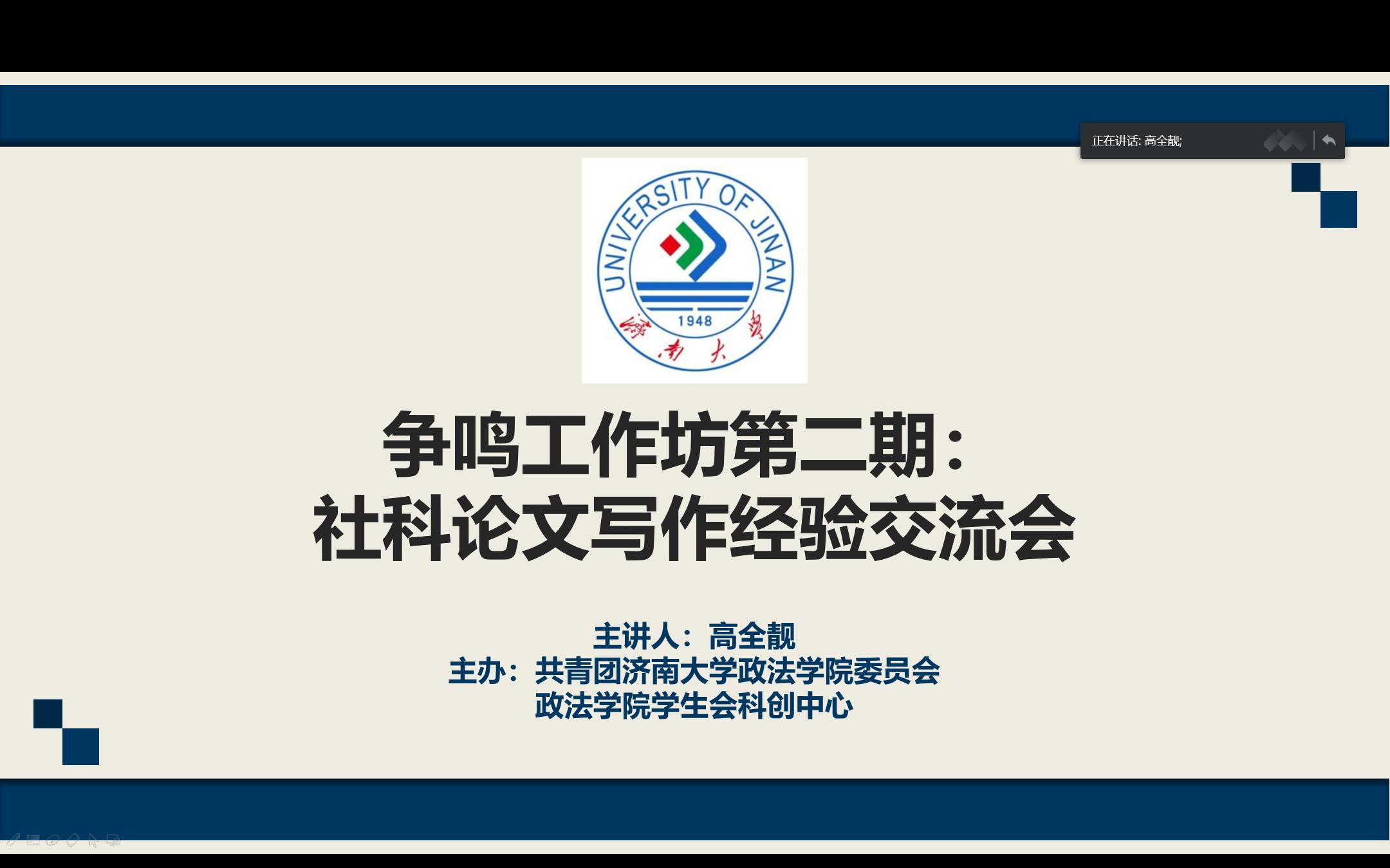 学生会科创中心承办的“社科论文写作经验交流会”于4月1日晚八点通过腾讯会议成功举办。来自劳动与社会保障专业的高全靓就有关社科论文写作经验进行了分享,王清华主持此次经验交流会。