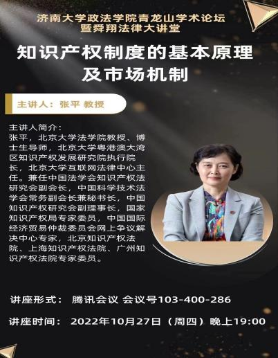 青龙山学术论坛暨舜翔法律大讲堂于线上举办,此次讲座特别邀请北京大学法学院教授、博士生导师张平教授做题为《知识产权制度的基本原理及市场机制》的学术报告。讲座由麻豆成人