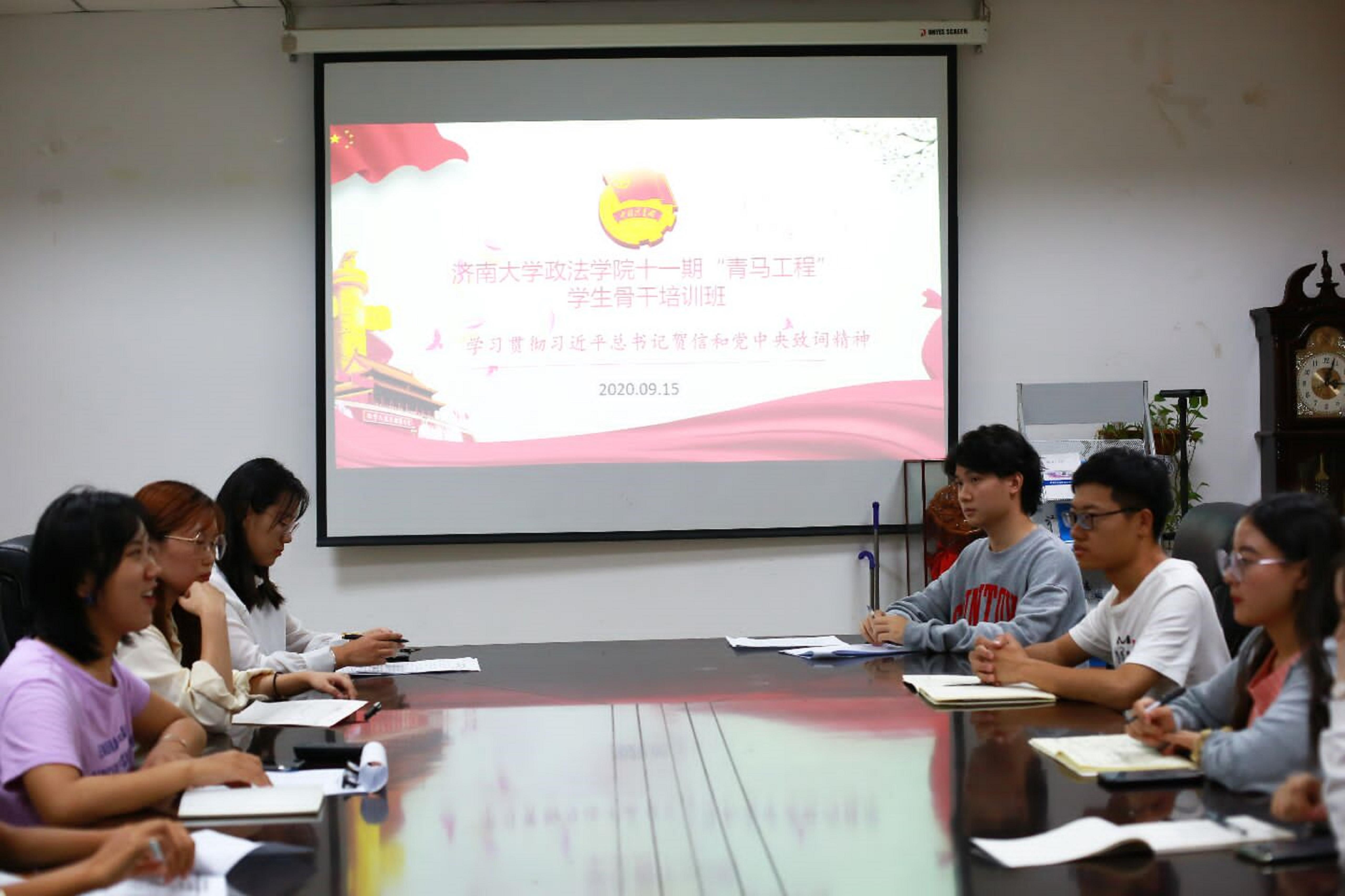 第十一期“青年马克思主义者培养工程”学生骨干培训班(以下简称青马班)采取“小组主题学习+学员代表座谈会集中讨论”的形式组织学习贯彻习近平总书记贺信和党中央致词精神,会议由青马班班长何福龙,团支书王淑杰主持。