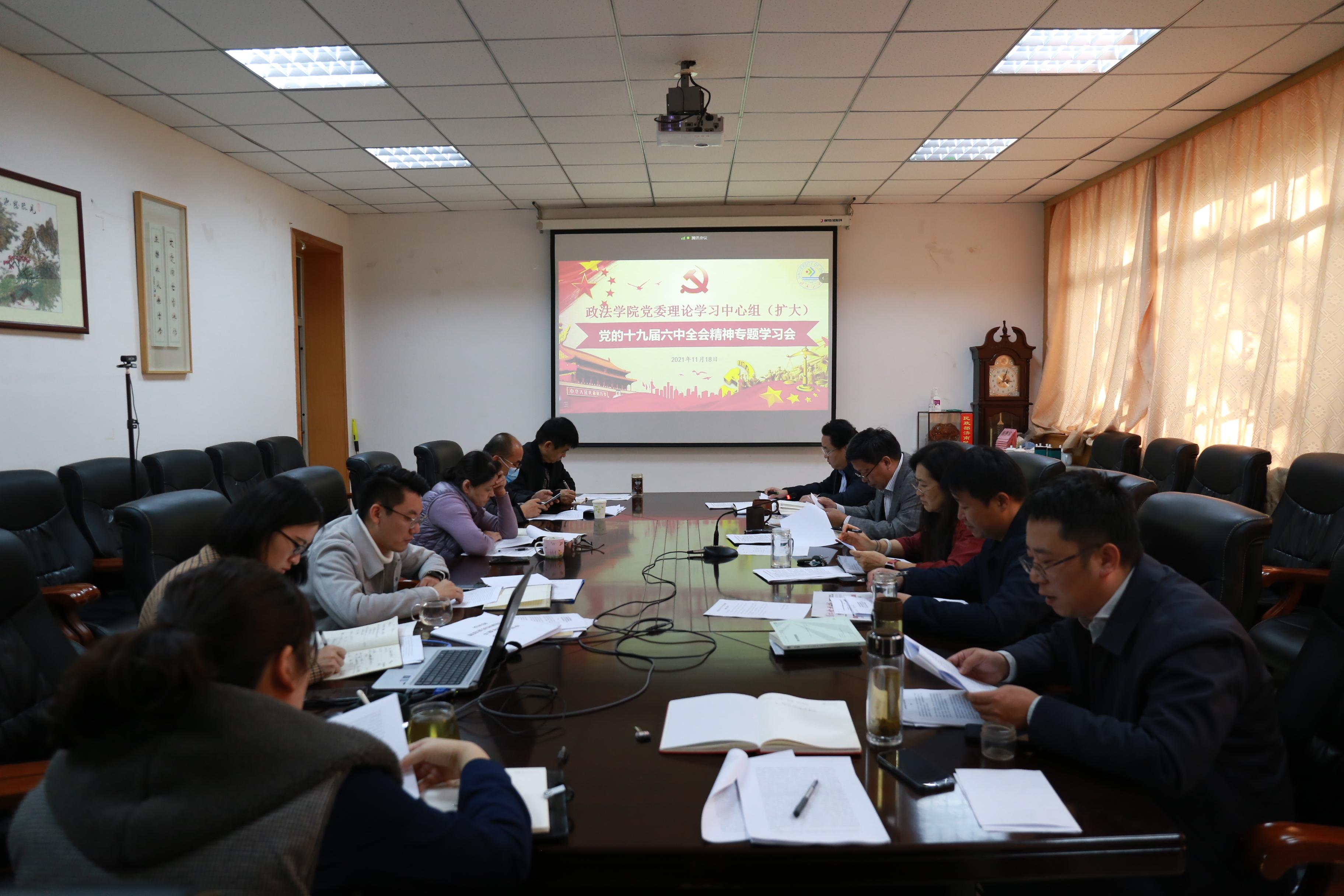 召开党委理论学习中心组(扩大)学习会议,专题学习党的十九届六中全会精神。会议采取线上线下相结合的方式,学院党委领导班子成员、科级干部、各支部书记委员参加会议,会议由学院党委书记徐庆国主持。