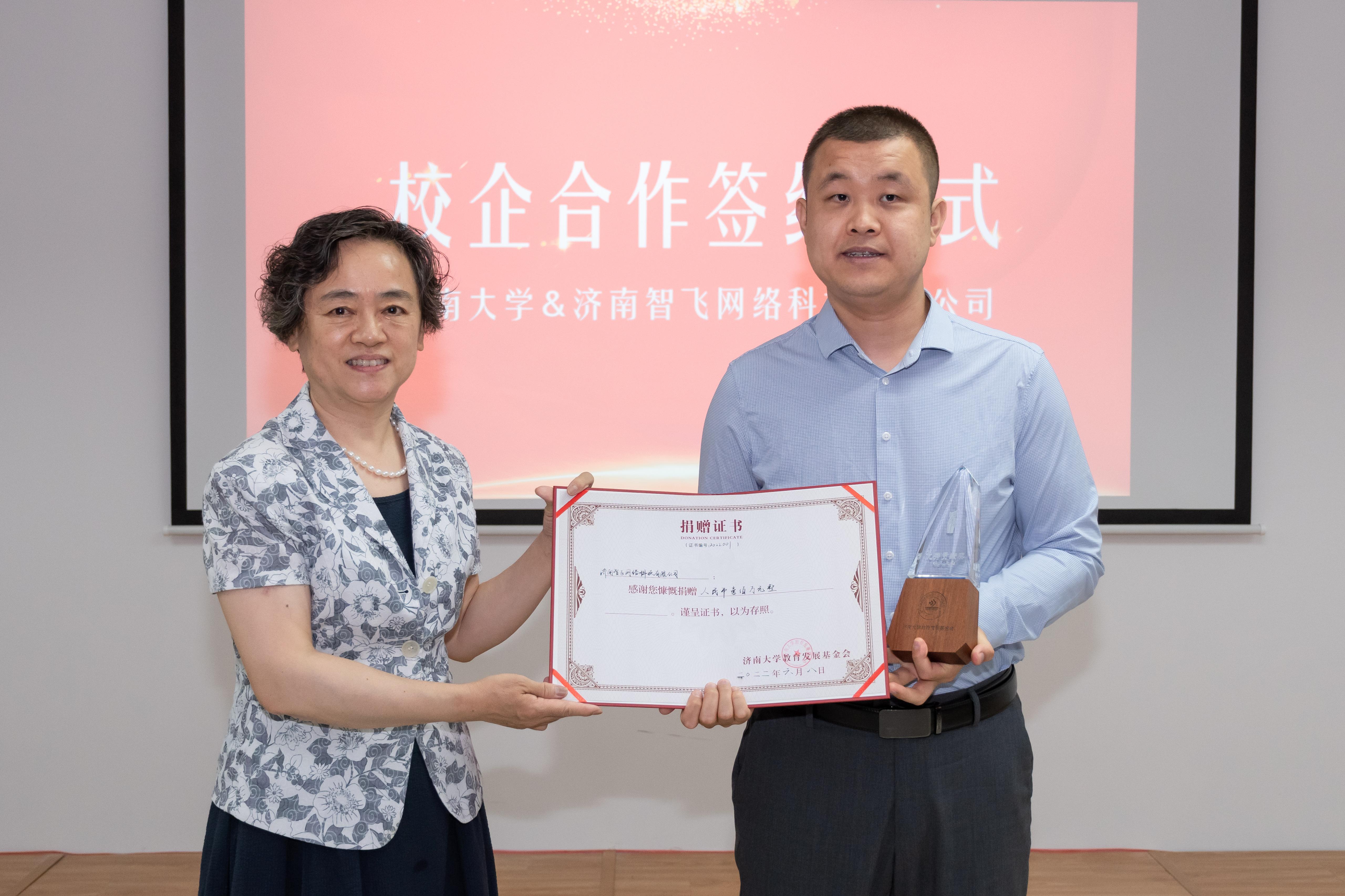 党委副书记张硕秋一行走访济南智飞网络科技有限公司、山东律保标信息科技有限公司开展访企拓岗促就业工作。并与济南智飞网络科技有限公司(以下简称智飞公司)举行战略合作签约揭牌暨捐赠仪式。济南智飞网络科技有限公司董事长、麻豆成人