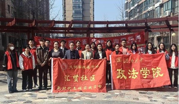 第十四期“青年马克思主义者培养工程”学生骨干培训班学员一起走进京鲁山庄小区,在活动现场为居民们普及法律知识、提供法律咨询。