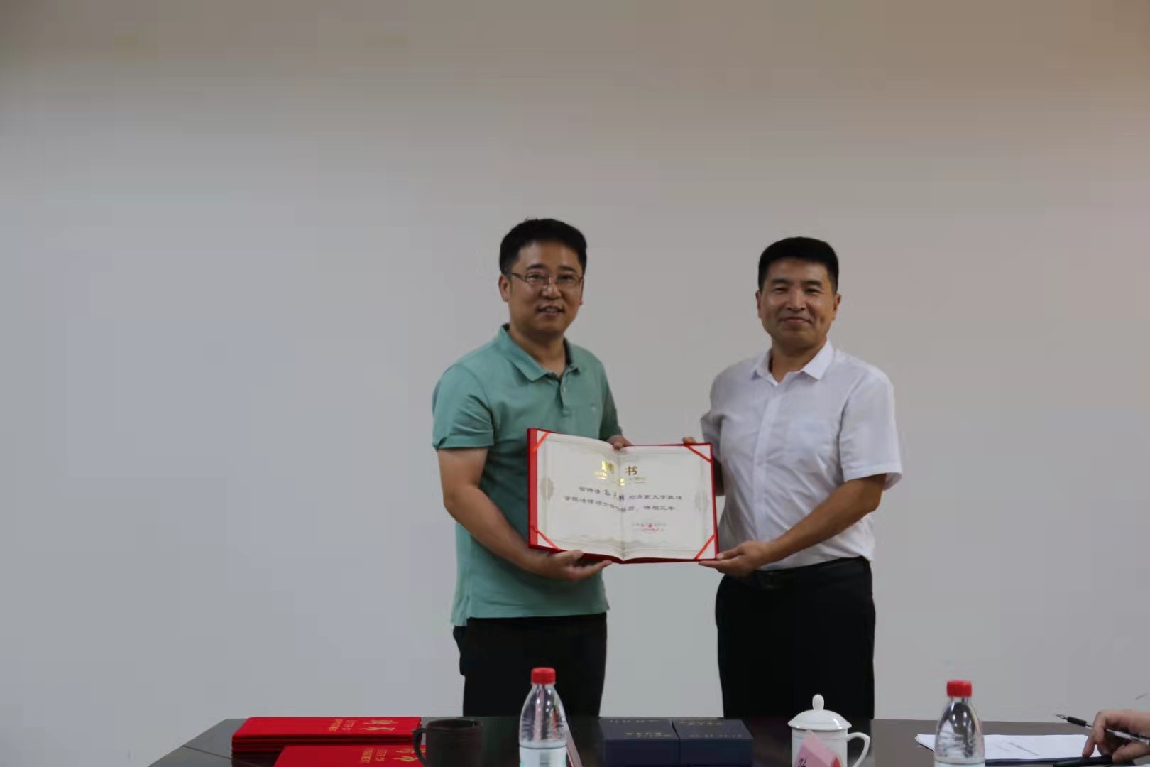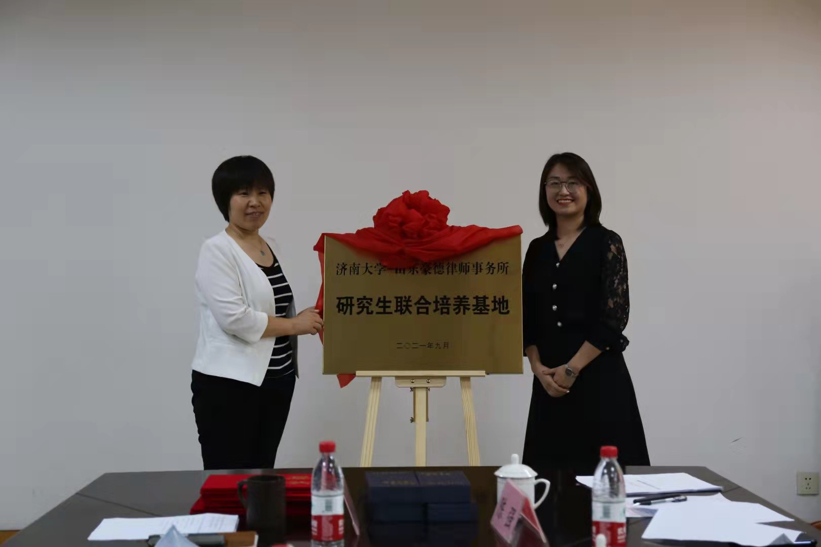 与山东豪德律师事务所校企合作共建专业战略合作协议》,徐庆国书记与吕洪果副主任共同为本科生实践基地揭牌,仲倩副院长与王晓倩主任共同为研究生实践基地揭牌,刘康磊副院长为受聘的豪德律所四位法律硕士校外合作导师颁发聘书。