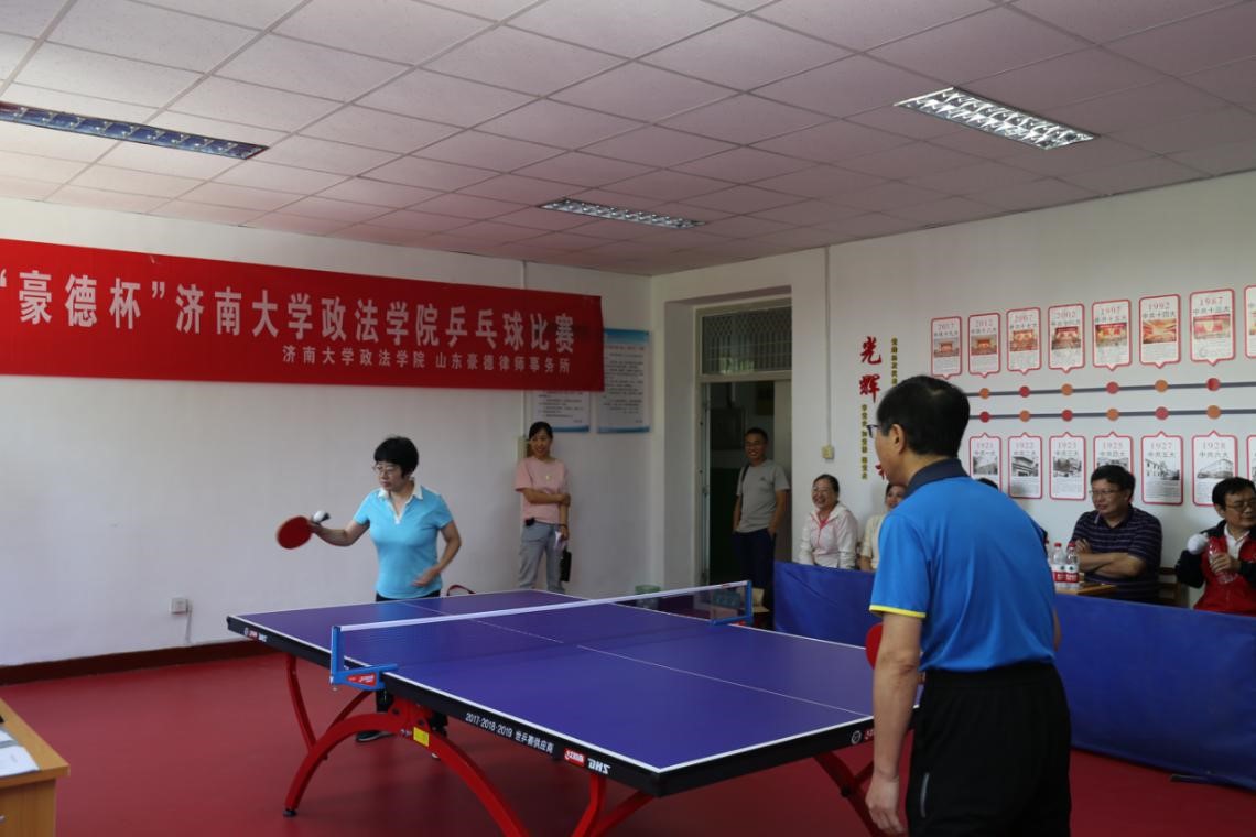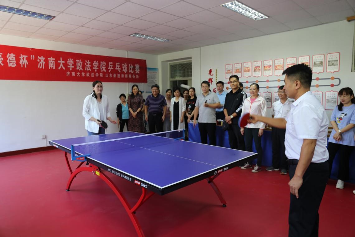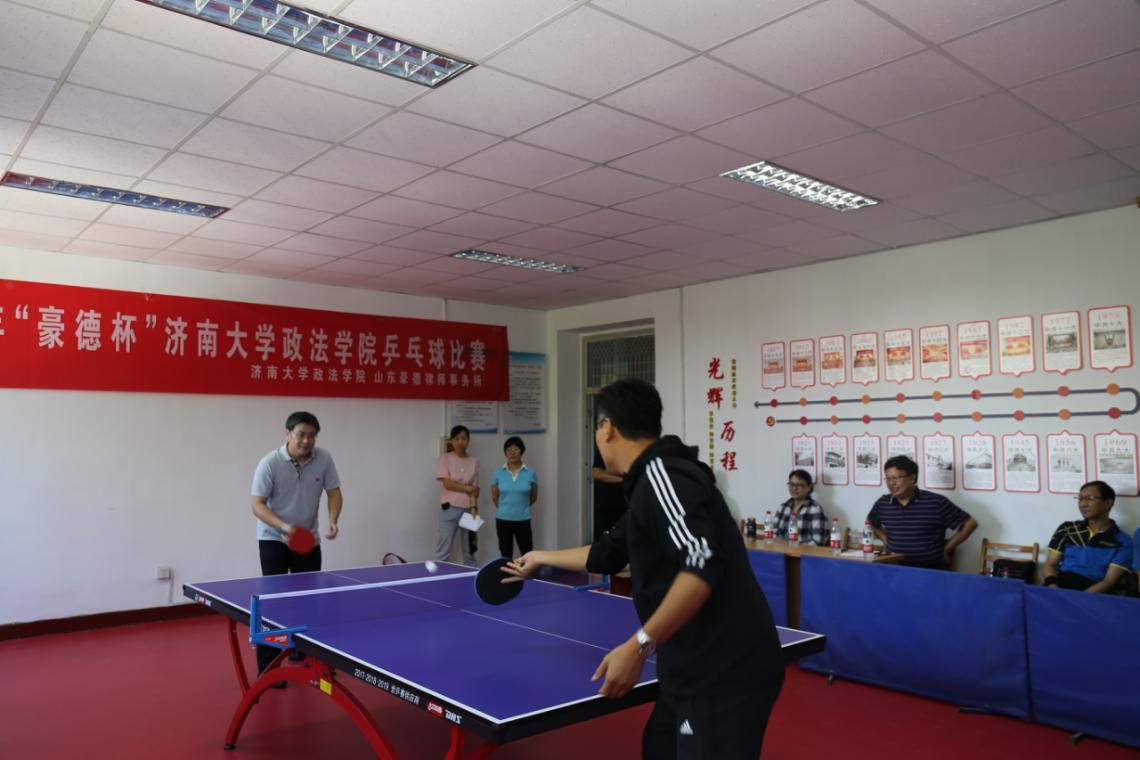 乒乓球比赛开幕仪式,王岩副主席与孙天锋副主任共同为比赛开球。本次“豪德”杯乒乓球比赛以“庆教师节、促交流,话友谊、展风采”为主题,共有学院教师研究生组成的10支队伍参赛,比赛赛程八天。