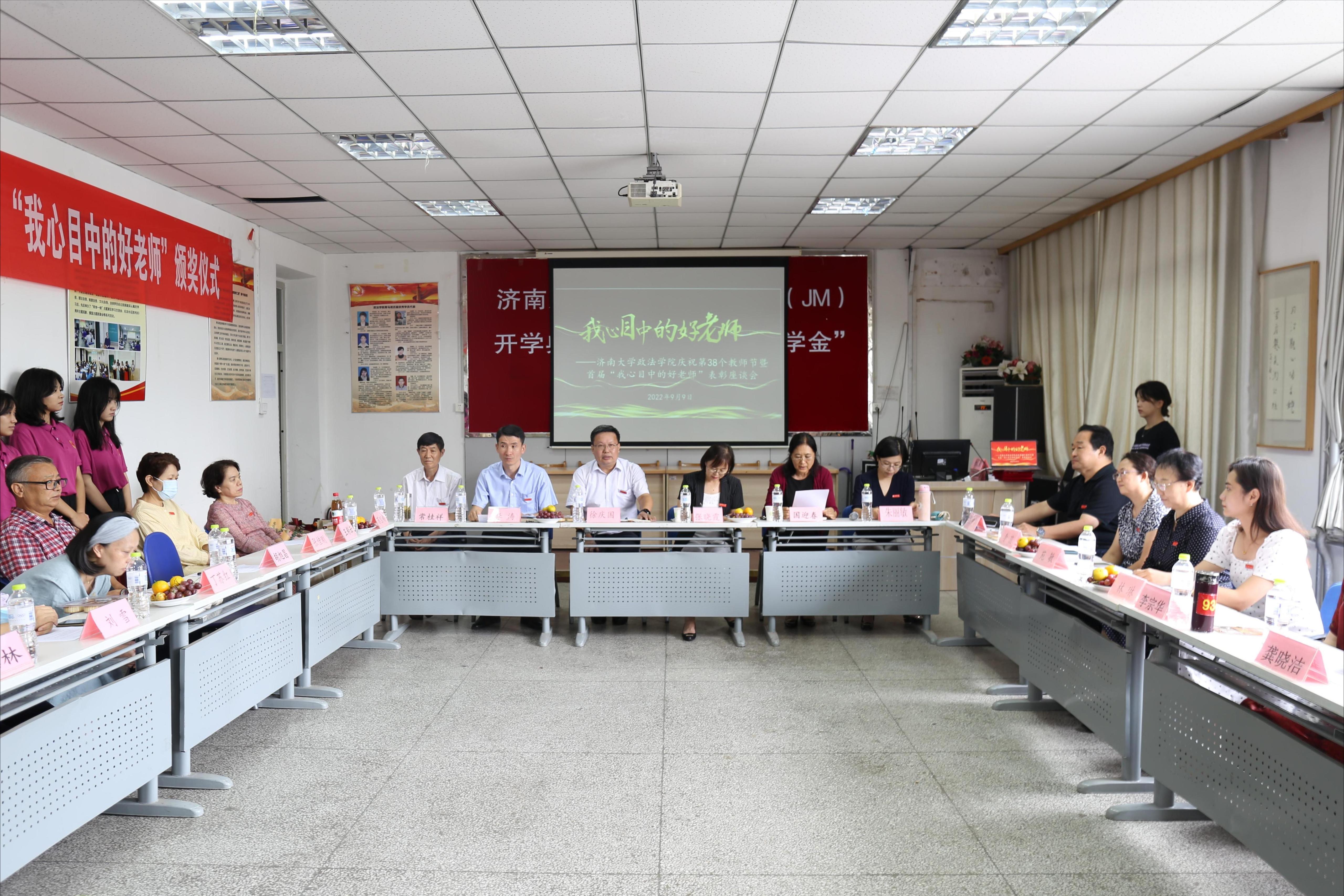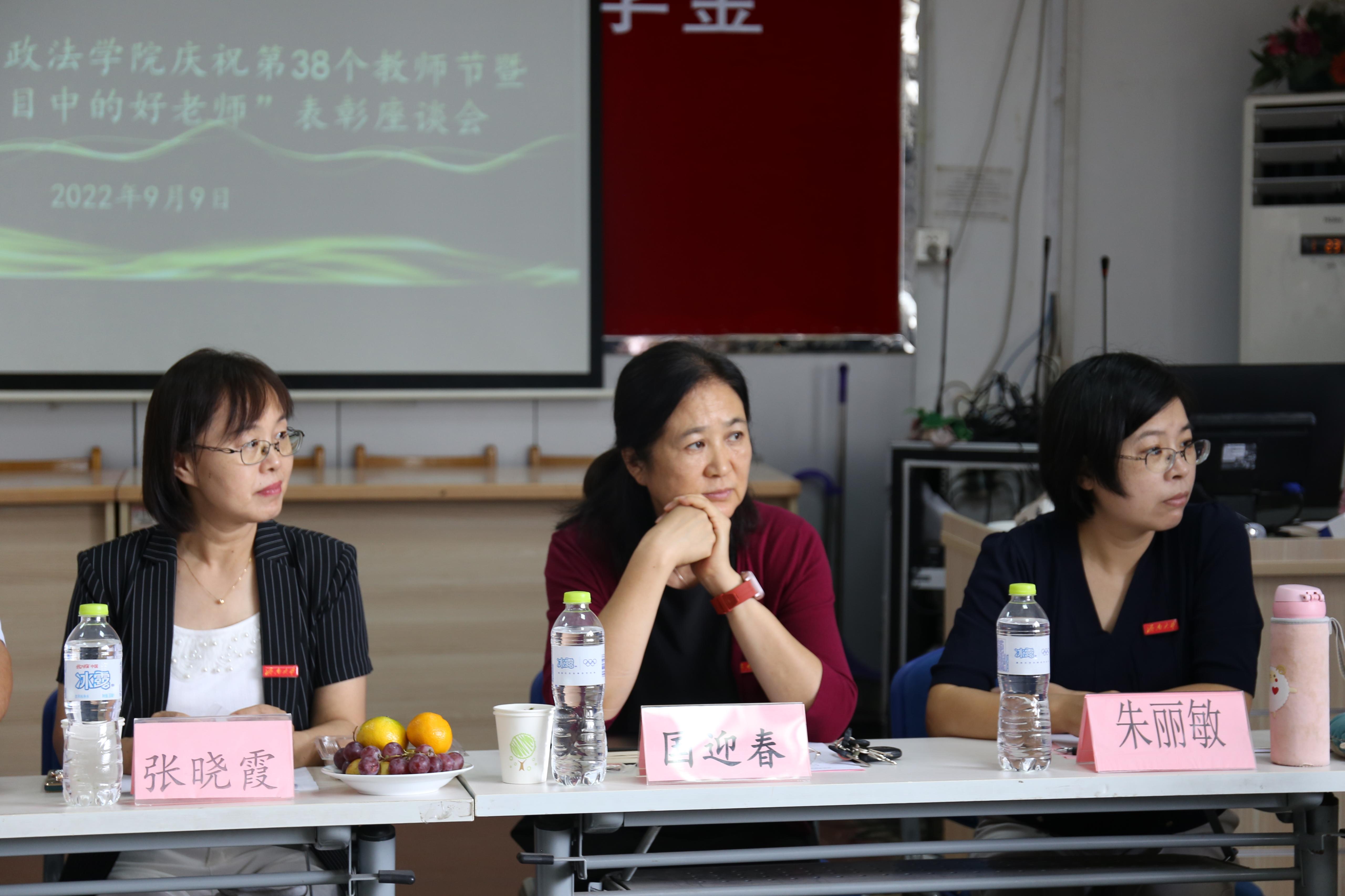 座谈会上荣退教师代表人力资源与社会保障系胡旭昌教授回顾近40年的从教经历讲到作为教师职业辛苦而又肩负着巨大的责任,一直激励着自己不断提升个人学识,努力做一名学生满意的好教师。获奖教师代表政治学系拥有38年教龄的常桂祥教授讲到,学院授奖其实体现的是对广大长期坚守在教学第一线的普通教师的尊重和激励。法学系侯中华教授激动的说到教师是平凡而又神圣的职业,背负着学生家长和亲人的殷切希望,作为一名人民教师我将继续热爱并为之奋斗一生。社会学系龚晓洁教授特别感谢学院营造的奋发向上、凝心聚力的氛围,与学生教学相长的过程,激励着自己不断进步。行政管理系周晨虹教授感慨到,“我心目中的好老师”这是份有温度的荣誉,自己会加倍珍惜。