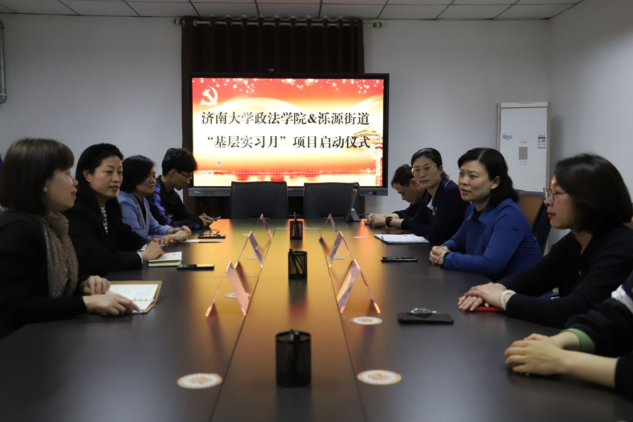 第二组同学在郝丽、魏志荣、韩芳三位老师带领下来到泺源街道办事处。街道党工委副书记、总工会主席李迎、饮虎池社区书记兼居委会主任李坤、普利街社区书记兼居委会主任穆士薇等领导出席了见面会。街道党工委副书记、总工会主席李迎详细而全面地介绍了泺源街道各个社区的基本情况,着重强调了这些社区背后所蕴含的深厚历史文化底蕴,重点讲述了五一期间街道办事处工作内容。同时,表达了对同学们的殷切期望,希望同学们在接下来的一个月时间里,不仅能协助社区开展工作,还能深入了解老济南,不断丰富自己的知识储备。郝丽老师强调“只有脚踏实地才能仰望星空”,希望同学们在实习过程中用心去感悟。韩芳老师也对同学们提出了高要求和高标准,鼓励大家要勇于攻坚克难,积极应对各种挑战。最后,各社区负责人与相应的同学进行了联系,标志着“基层实习月”项目启动仪式圆满结束。通过交流和座谈,老师和同学们对基层工作有了更加全面深入的认识。