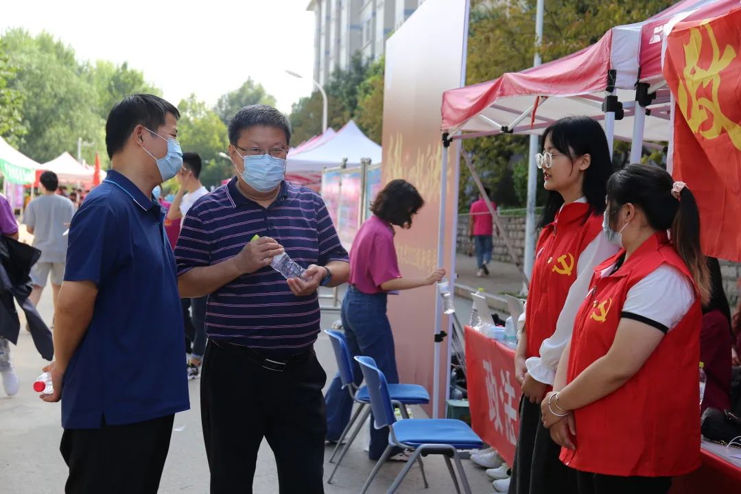 迎新当天,学校学院领导来到迎新现场,看望前来报到的新生,亲切慰问奋战在迎新一线的老师们和学生志愿者们。在学院迎新报到点认真查看了学院精心为报道准备的物资设备、导引资料,详细了解迎新工作流程和新生报到情况,并与志愿者以及2022级新同学亲切交谈、合影留念,为他们送上诚挚问候。
