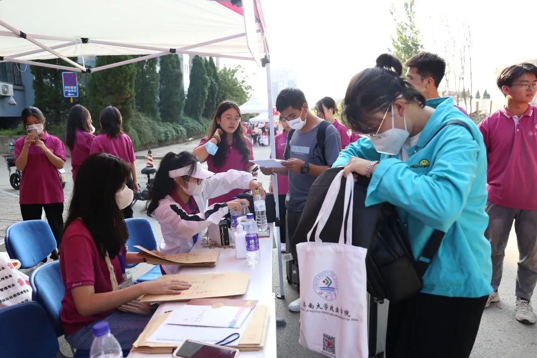 9月17日、20日,清晨的新生接待处,师生代表和志愿者们早早地等候着新生的到来。接待处分别设立了迎新扫码站、专业报道点,为新生办理报到手续、发放报到材料、开展迎新活动。到处都是忙碌的身影,一张张热情的笑脸,一句句亲切的问候,一项项贴心的服务,欢迎着来自祖国各地的莘莘学子。