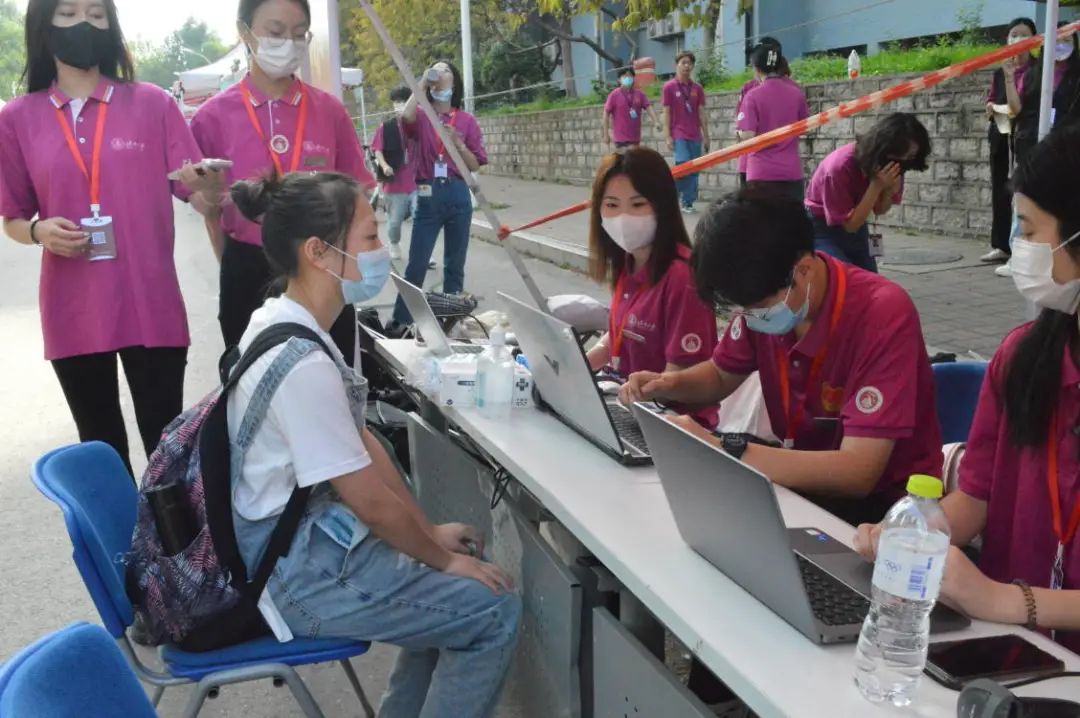 为全面做好高校疫情防控工作和迎新工作,学院高度重视迎新过程中疫情防控工作的进行,同时学院组建了志愿者团队,负责省外新生核酸检测、新生报道、引导并疏通人群等工作以保障学生安全。