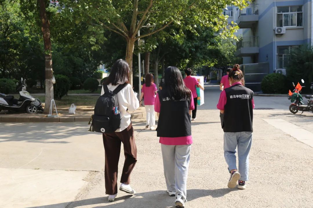 带着父母的嘱咐,带着期盼,带着新奇,萌新们踏入心中向往已久的大学校园。从南院北门到南院学30北侧马路的迎新地点,学院为新生们准备了丰富的导引资料和充足的物资供给,学长学姐忙前忙后做好服务引导工作,辅导员老师、班主任耐心回答新生们对大学学习生活的困惑;学生公寓里,早已打扫干净整洁的宿舍环境迎接着祖国四面八方来到的萌新们……遇见政法的第一天,欢歌笑语、团结友爱,未来的大学之旅正缓缓拉开帷幕。