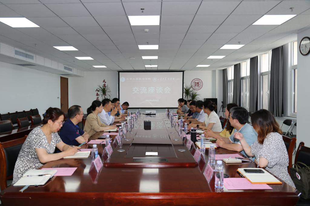 党委书记徐庆国介绍了学院基本情况、办学特色、教师发展等,希望双方深化交流合作,共同推进人才培养、学科建设等深度发展。双方与会人员围绕基层党建、科学研究、学生管理、团学工作、社会服务等开展深入的交流与讨论。