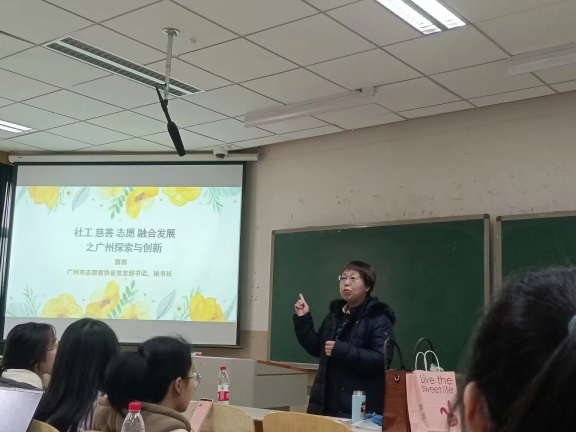 邀请广州市志愿者协会党支部书记和秘书长、2005级社会工作优秀校友甄鹤,在10教411教室举行社工专业认知实习专题讲座——“社区、慈善、志愿融合发展之广州探索与创新”。本次讲座由麻豆成人