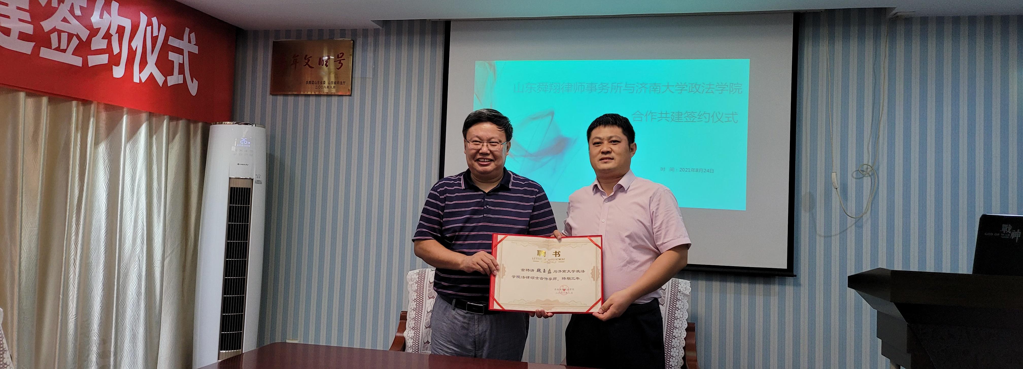 -山东舜翔律师事务所研究生联合培养基地”牌匾。
