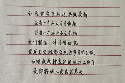 学子积极响应,学院共累计收到了70余件来自不同年级、不同专业同学的投稿,共推出13期优秀征集作品展示,线上推送累计阅读量达1752次。同学们从“我的一天”“厨房与爱”等主题短视频到“stay with me”自习打卡挑战,从“一本好书”“观剧日记”到“手写寄情”“身边感动”,多板块多角度记录宅家生活的美好瞬间,分享自己的学习日常,以线上别样的方式为抗击疫情助力,同时也充实了假期生活。学院将优秀稿件以推送的形式进行分享,为同学们提供了线上交流的窗口。许多同学表示,此次活动使自己的假期时间得到了充分的利用,部分同学也在留言区写下了自己的感想与体会,活动得到了学生的一致好评。