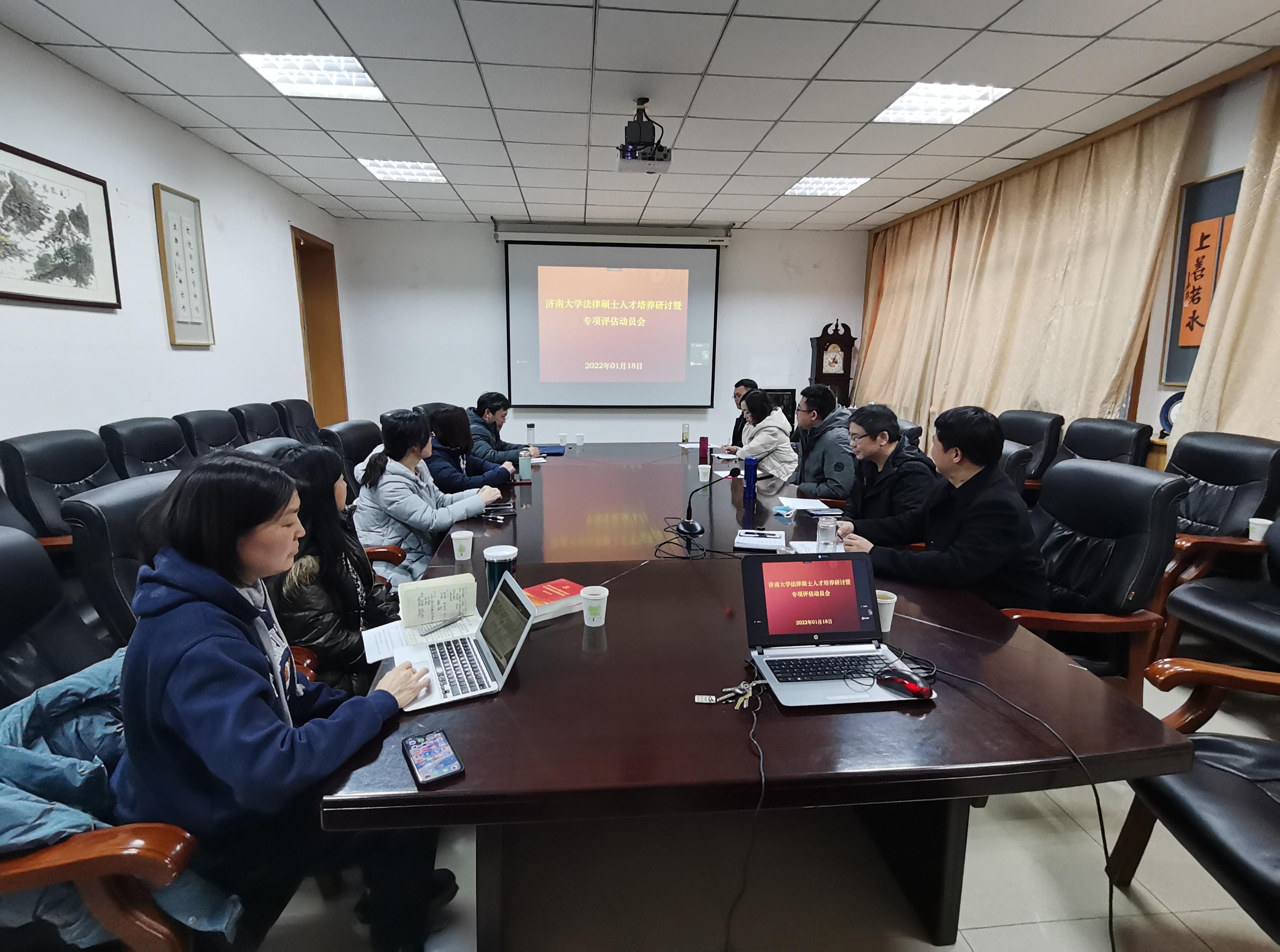 法律硕士人才培养研讨暨专项评估动员会在学院213会议室召开。学院党委书记徐庆国,院长高功敬,院长助理李秀凤,法律硕士教育办公室主任陈强,法律硕士教育培养相关老师参加了本次会议。