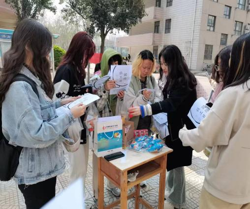 活动过程中,小组成员根据不同的责任分工,各司其职,做好宣传工作。其中,赵书玉同学进行气氛烘托吸引人流,杨雨滋同学、司慕雅同学和王雯同学进行宣传单的发放以及专业知识讲解,党雪同学和魏珏同学负责答题环节奖品的发放。此次活动现场气氛活跃,同学们参与率较高。实习小组共发出100张宣传单,知识有奖问答有40位同学积极参与,一定程度上促进了宣传对象对社会工作专业和社会工作者等相关信息的认知。活动结束后,小组成员进行了现场卫生打扫,并及时反思总结经验。