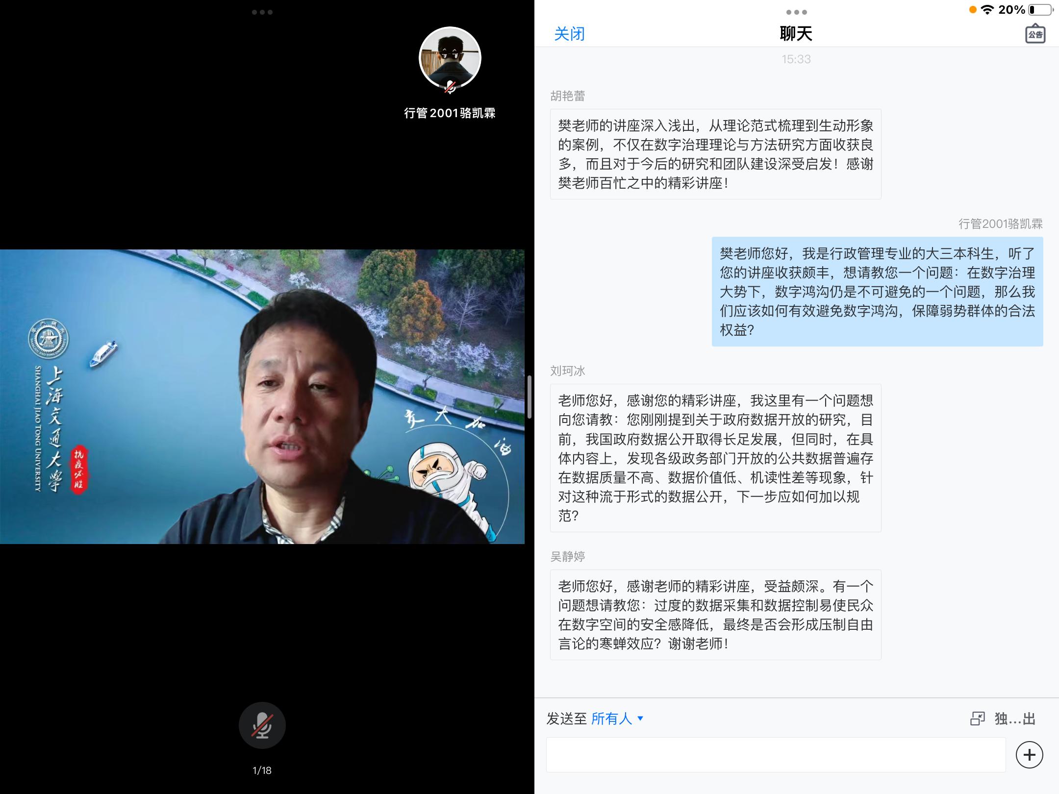 院长助理朱丽敏副教授以及行管系胡艳蕾副教授主持,相关学科教师以及研究生、本科生共150余人线上参加。