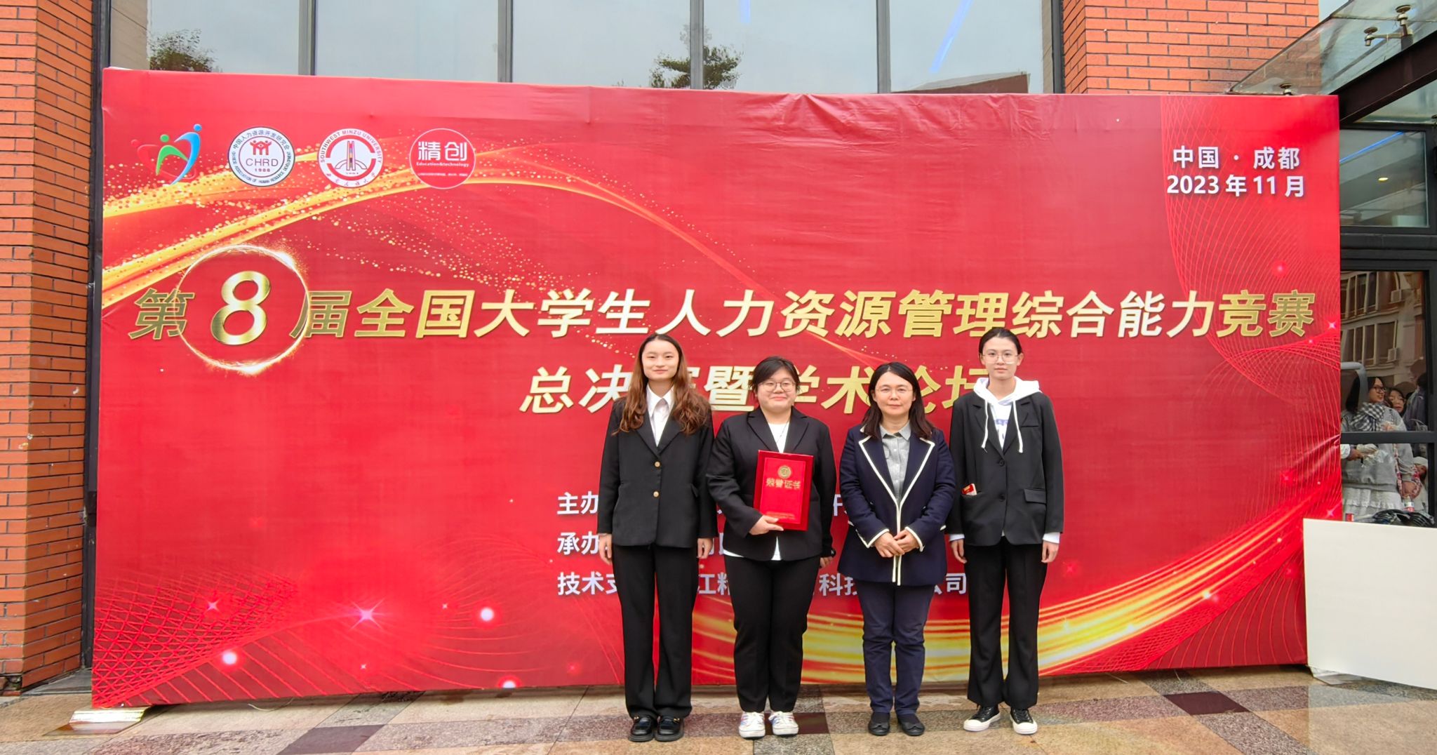 从2023年3月校赛始,5月历经北方赛区,北京首都经贸大学大区赛,本区共68支队伍,经历线下HR实务设计汇报,荣获大区赛一等奖,成功晋级;到11月全国总决赛三等奖,共历时9个月,本次总决赛全国共有来自中南财经政法大学、西南民族大学、首都经济贸易大学、苏州大学、四川大学等院校的88支队伍参加。