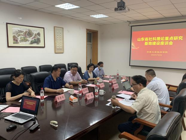 领衔申报并获批的山东省社科理论重点研究基地“新时代社会治理与政策创新研究基地”的建设基础、研究领域、建设思路和进展等情况进行了重点介绍。姜远桥主任详细介绍了山东省社科理论重点研究基地“山东省习近平法治思想研究基地”的建设方案。随后,双方进一步就如何建实做强研究基地,发挥研究基地的组织协调、协同攻关、引领带动作用等重点问题展开了深入的讨论交流。