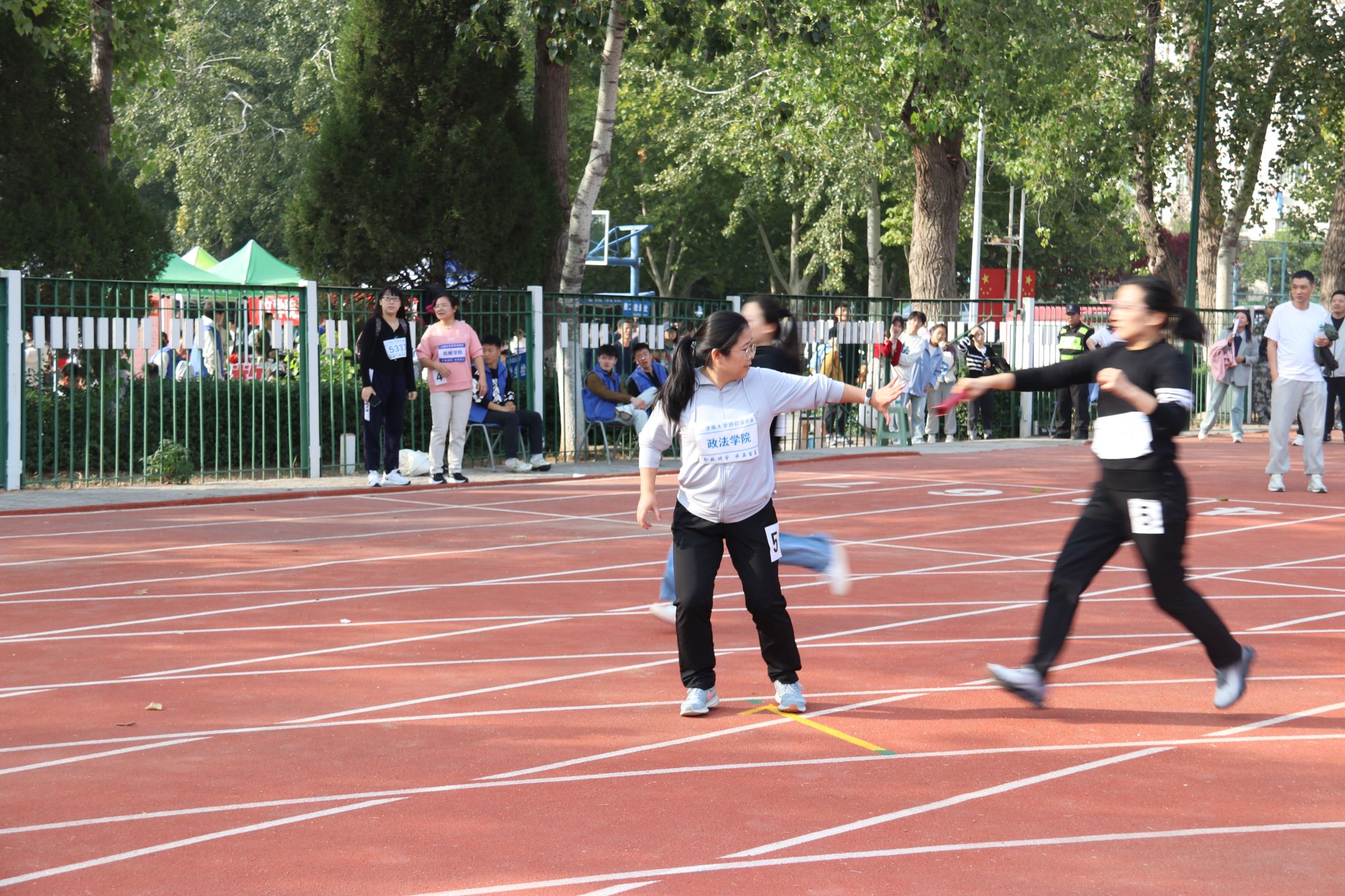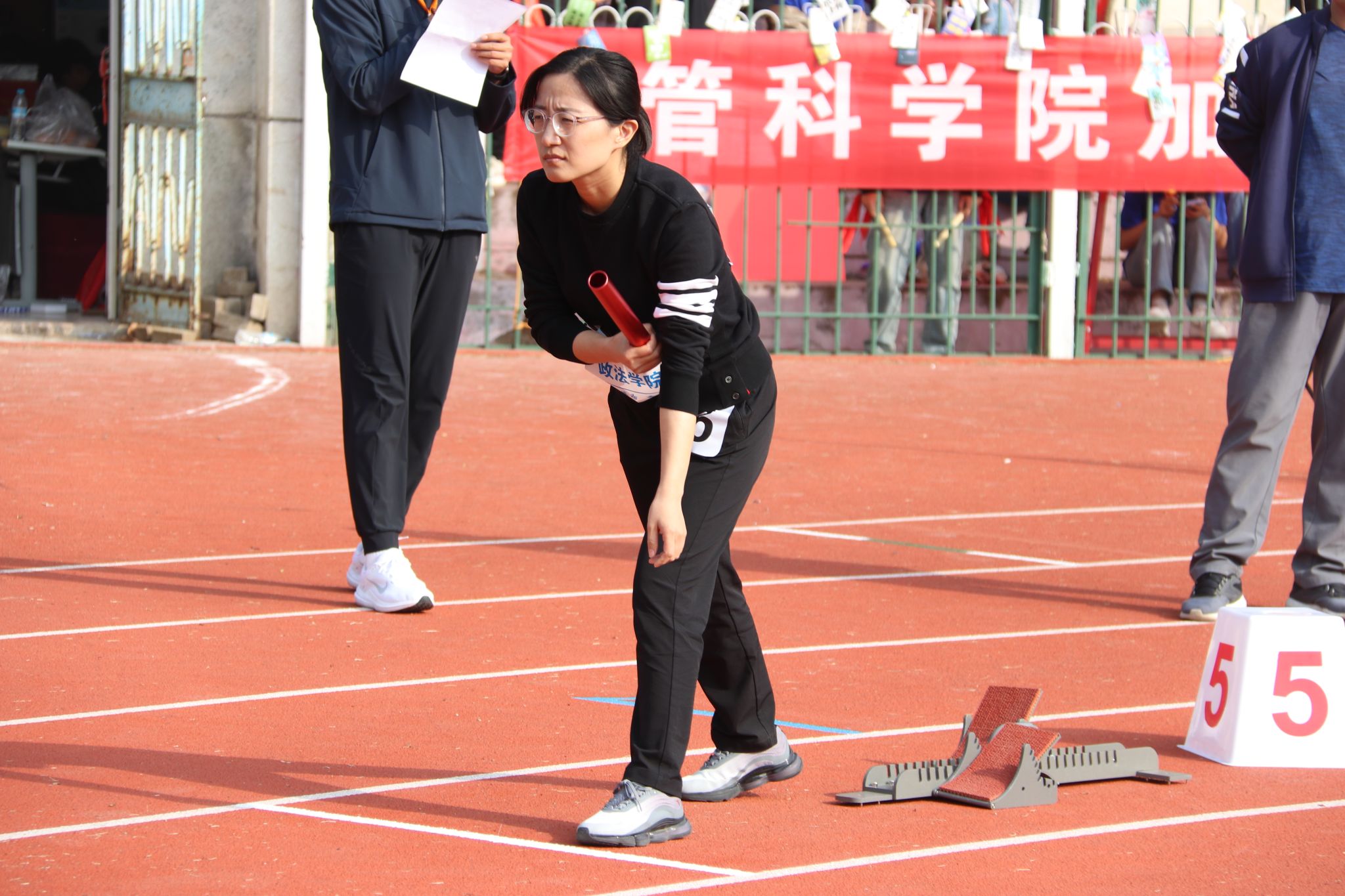 学子纵然青春飞扬,教师也是当仁不让。女子青年教师组4×100 米接力赛,将速度与激情展现得淋漓尽致。在起跑点,每位老师都摩拳擦掌,充满必胜的信念。随着一声发令枪响,女教师们如离弦之箭般飞驰而过。接力棒在她们手中传递,那是责任的交接,是信任的延续。在接力点处,老师们在看到队友快来到自己身边时,迅速做好起跑姿势,集中注意力。到了第二棒的时候,老师们迅速将手往上一挑,队友顺势接住棒,像骏马一样飞奔起来。她们奋力奔跑的身影,赢得了学生们的阵阵欢呼与喝彩。这一刻,她们不再是讲台上严肃的师长,而是充满活力的运动健儿。