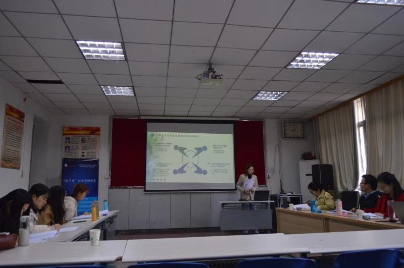李佳鑫、宋甜甜、信璐彤、李文丽、钱一民五位同学分别就题为《全面建成小康社会会背景下城市社区卫生服务问题研究——以乐龄市市中街道办事处社区为例》、《城镇化进程中失地农民养老保障现状研究——以济南市G县D村为例》、《老年人家庭照顾者抗逆力提升的社会工作介入研究》、《空巢老人临终关怀现状及反思——基于社会保障视角》、《家庭与社会张力:农村留守儿童就学地点选择影响因素分析》的论文进行了PPT展示与分享。四位老师分别从论文选题、研究思路、研究方法、参考文献及论文创新等方面进行了充分的评价,并给出了具体可行的建议。