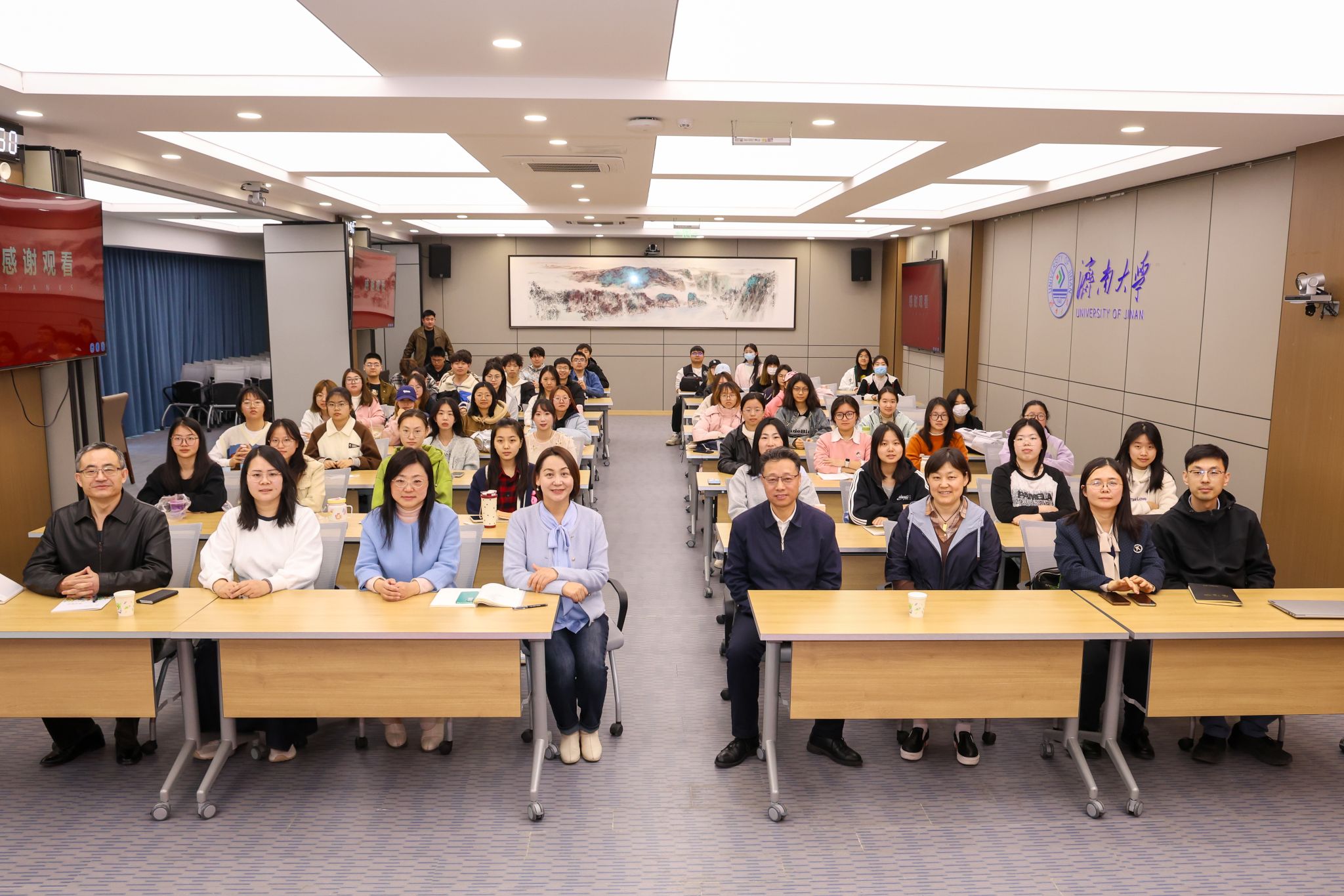 春风有信,花开有期。在题为《用心服务 用情工作 让退役军人成为全社会尊重的人——济南市退役军人工作概述》讲座中,任副局长由局工作情况专题片引入,带我们初步了解了济南退役军人事务局的基本工作和成果,在同学们心中树立起崇尚英雄,尊崇军人的思想。随后任副局长依次从退役军人工作概述、服务保障体系建设、思想政治引领、移交安置、就业创业、军休服务管理、优待抚恤、褒扬纪念、双拥共建等方面,阐述其重要地位、介绍济南举措成果及感人故事,涵盖政策咨询、权益维护、拓宽安置渠道、搭建就业平台、提升服务水平、解读优待政策、修缮纪念设施等内容,向我们展示了济南退役军人事务工作的突出成就和创新政策,为同学们提供了宝贵的实践经验和理论知识。最后,一部烈士寻亲的纪录片将本次讲座推向高潮,在场的师生为之动容。任副局长向同学们表达了“珍惜现在,不忘初心,勇毅前行”的寄语。