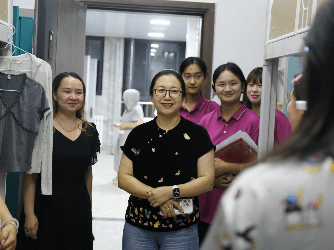 夜色渐深,关怀更暖。迎新报到当晚,学院党委书记李春慧、党委副书记李涛与辅导员一行深入新生宿舍,与大家亲切交流,细致询问住宿、饮食等情况,倾听入学感受,并围绕课程学习、社团活动与校园服务等问题一一耐心解答。走访中,老师们还介绍了学院的学科特色、培养目标和校园安全须知,鼓励新生早日适应环境、明确学业目标。