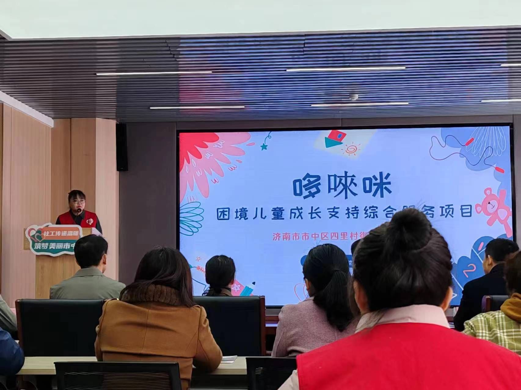 社工专业学生实习实践工作的深入开展,而且可以发挥社会工作专业的学科优势,推动社工服务站的专业化和规范化建设。最后,高院长祝愿合作双方继续拓宽合作领域、发挥资源优势实现互补。随后,四里村街道社工站站长韩燕青以“哆唻咪”困境儿童成长支持合服务项目为例,介绍了社工站的特色项目。