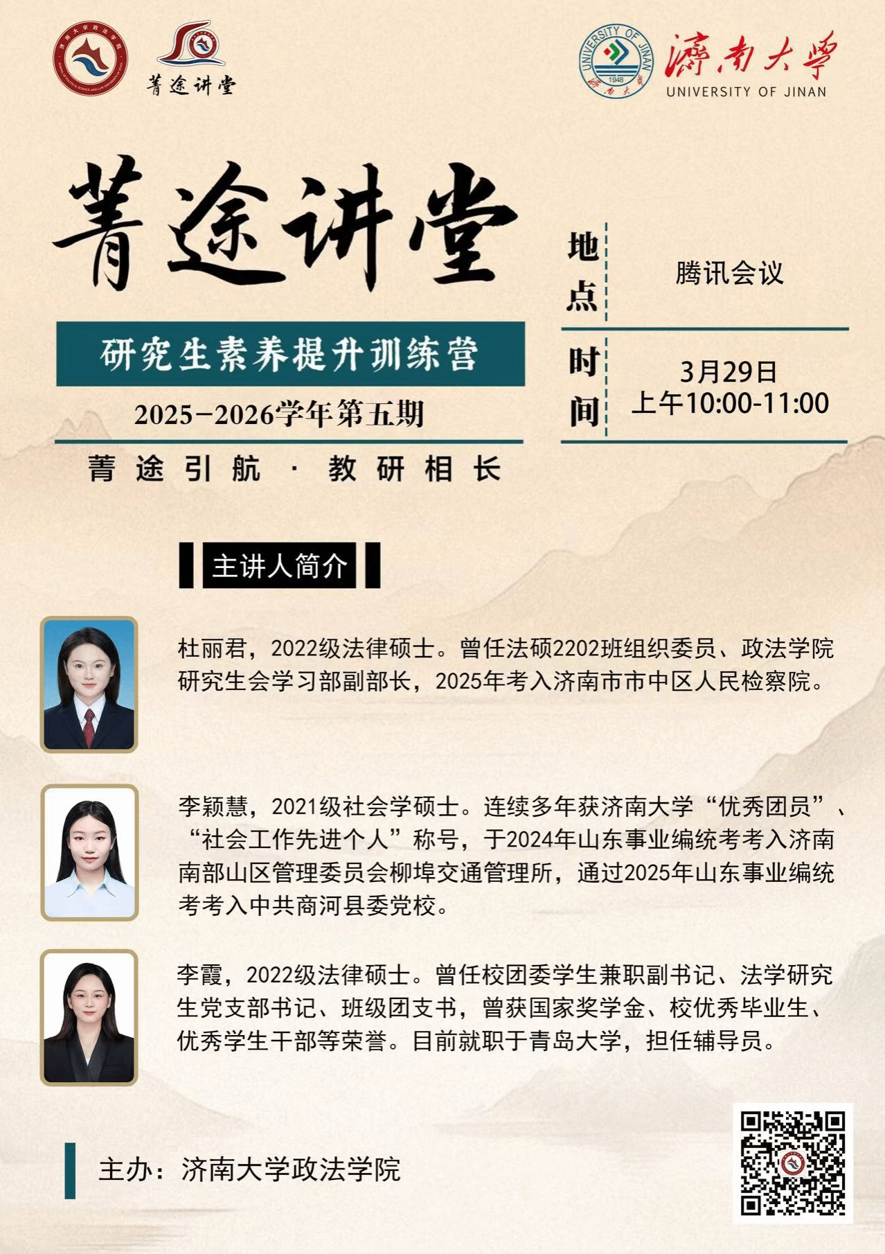 党支部与研究生会联合主办,特别邀请杜丽君、李颖慧、李霞三位优秀校友,围绕公务员、事业编、高校辅导员三大热门就业方向,分享备考经验与职场心得,学院全体研究生参加此次活动。