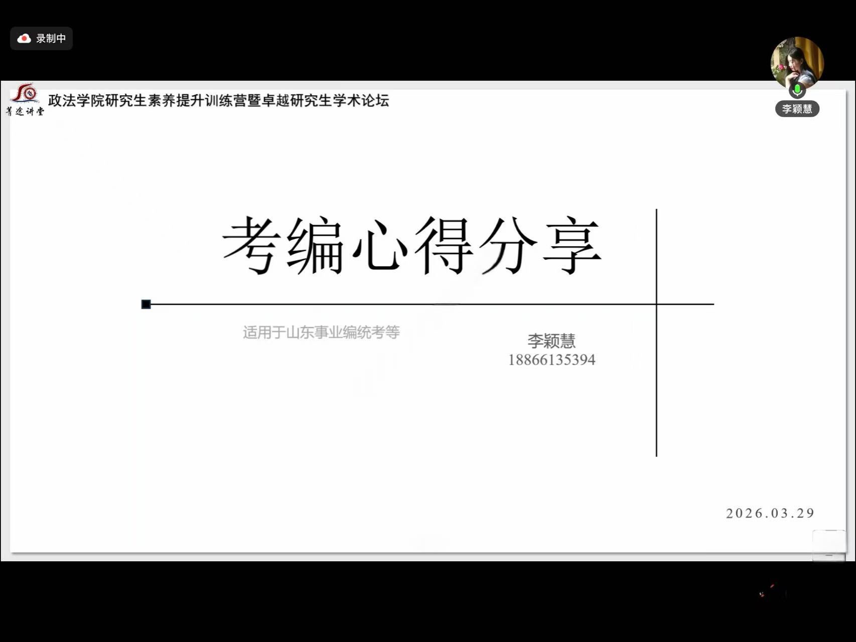 李颖慧校友详细讲解事业编备考全流程,鼓励同学们正视备考压力,不因报录比偏高而退缩,笔试阶段要夯实基础、反复演练真题,面试阶段强化练习熟悉流程,并借助录屏复盘优化作答细节。