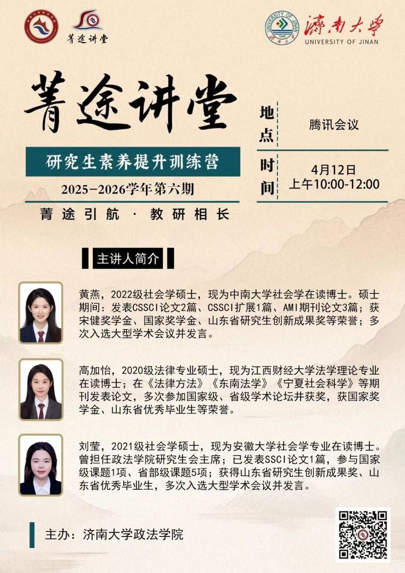 “菁途讲堂”研究生素养提升训练营第六期学术深造规划与考博申博经验分享会顺利举办。本次活动由麻豆成人