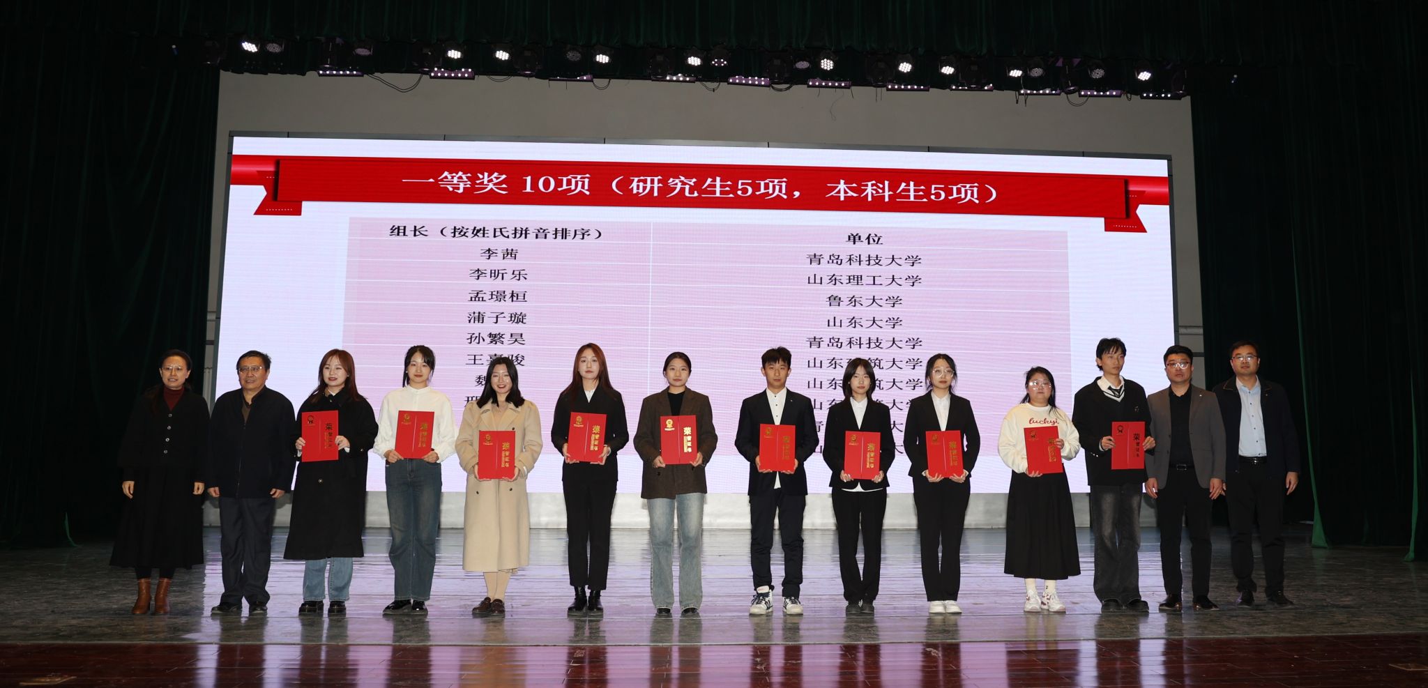 本次大赛共评选出一等奖10项(含研究生5项、本科生5项)、二等奖24项(含研究生9项、本科生15项)、三等奖47项(含研究生15项、本科生32项),优秀指导教师13名。山东大学研究生蒲子璇同学和麻豆成人