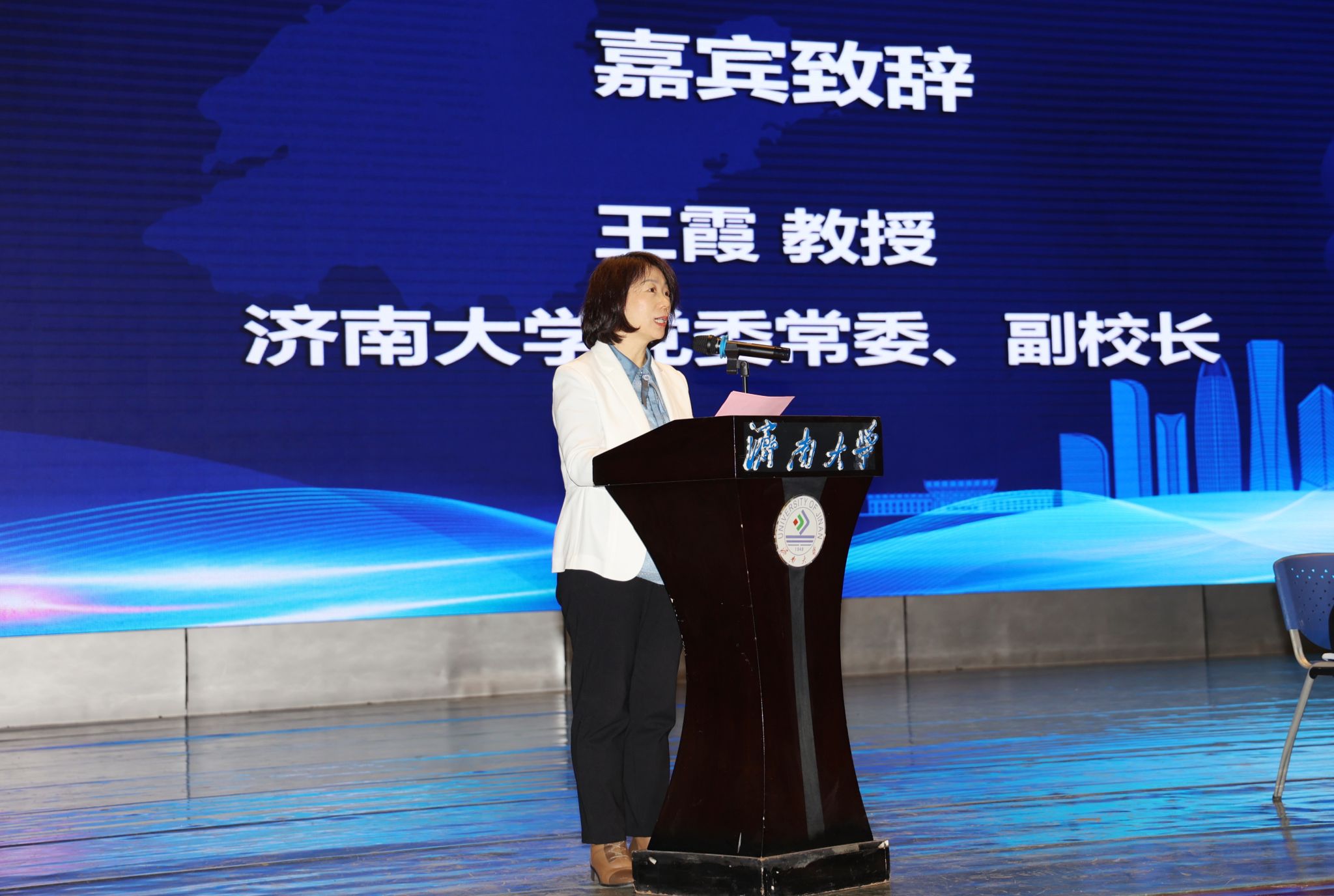 王霞副校长在致辞演讲中代表学校向参加大赛的各位领导、各位评委、老师以及参赛选手表示热烈欢迎,向长期以来关心支持麻豆成人