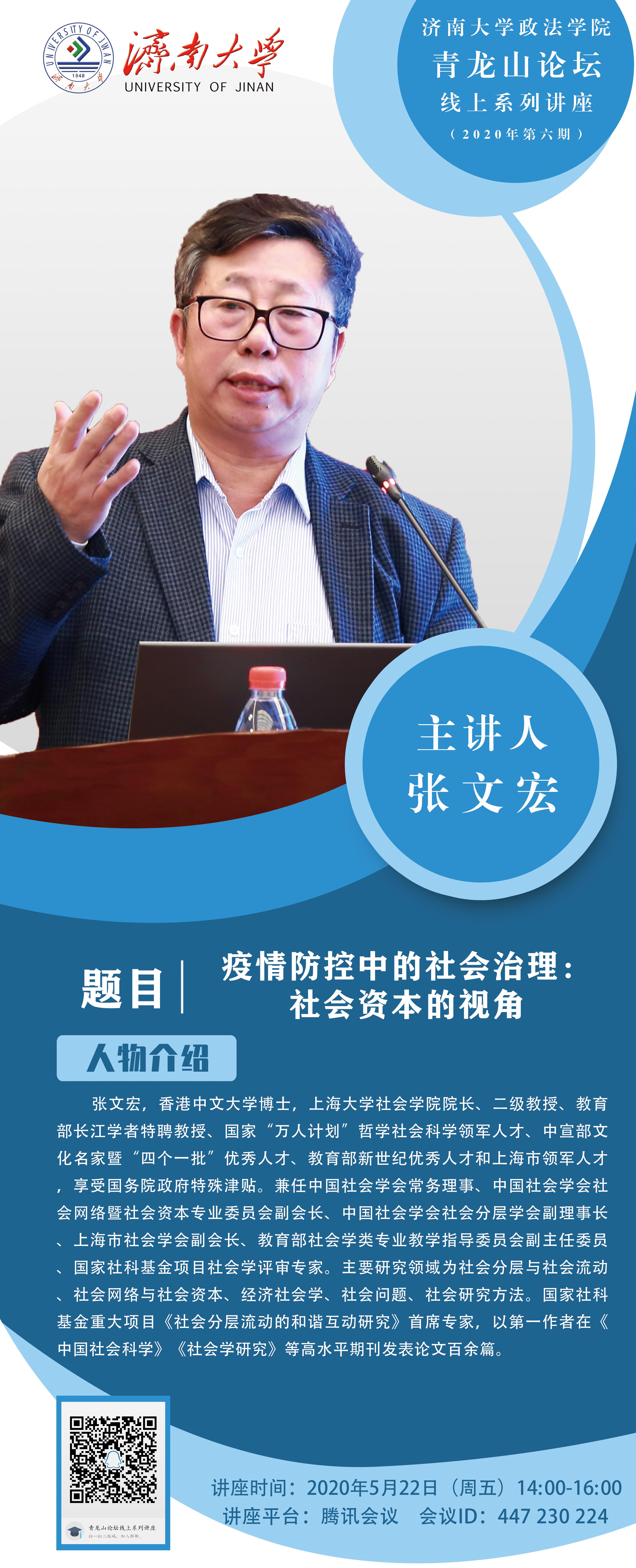 青龙山论坛——线上系列论坛(2020年第六期)疫情防控中的社会治理:社会资本的视角