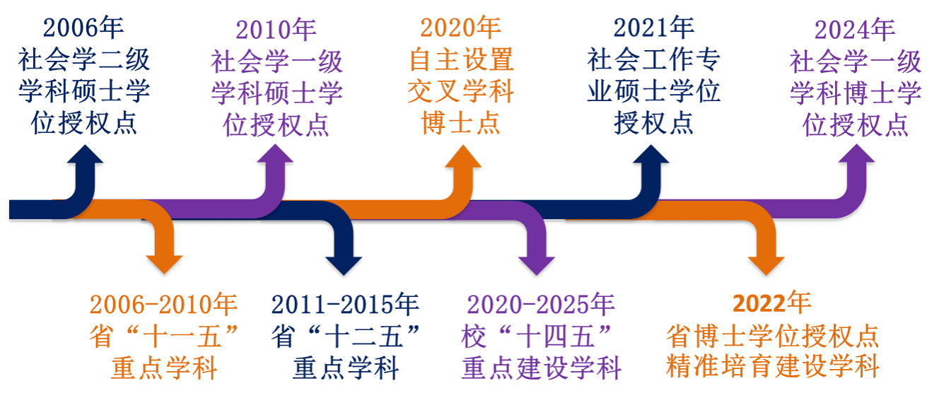 社会工作专业硕士学位所属的社会学学科2006年获社会学硕士学位授权点,2010年获社会学一级学科硕士学位授权点,2021年获批社会工作专业硕士(MSW)学位授权点,2024年获批社会学一级学科博士学位授权点,为目前山东省省属高校唯一的社会学一级学科博士学位授权点。社会学学科曾连续两次获评山东省重点学科,为“十四五”期间麻豆成人