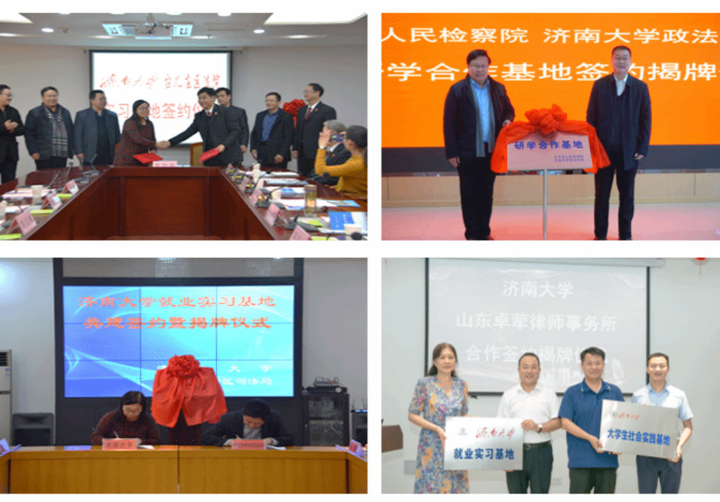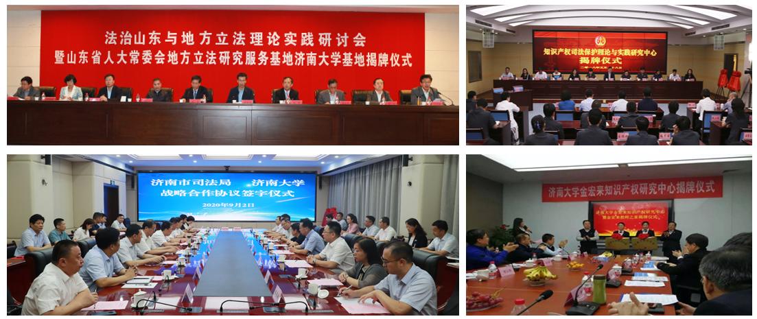 牵头成立山东省法学会社会法学研究会、济南市法学会行政法学研究会,学校以法学专业为支撑建有山东省人大常委会地方立法研究服务基地、山东省司法厅政府立法研究服务基地、山东省教育厅立法研究服务基地、济南检察理论研究基地、济南律师学院、济南国际法律服务研究院、知识产权司法保护理论与实践研究中心、济南市知识产权人才培养基地等省市级科研平台。
