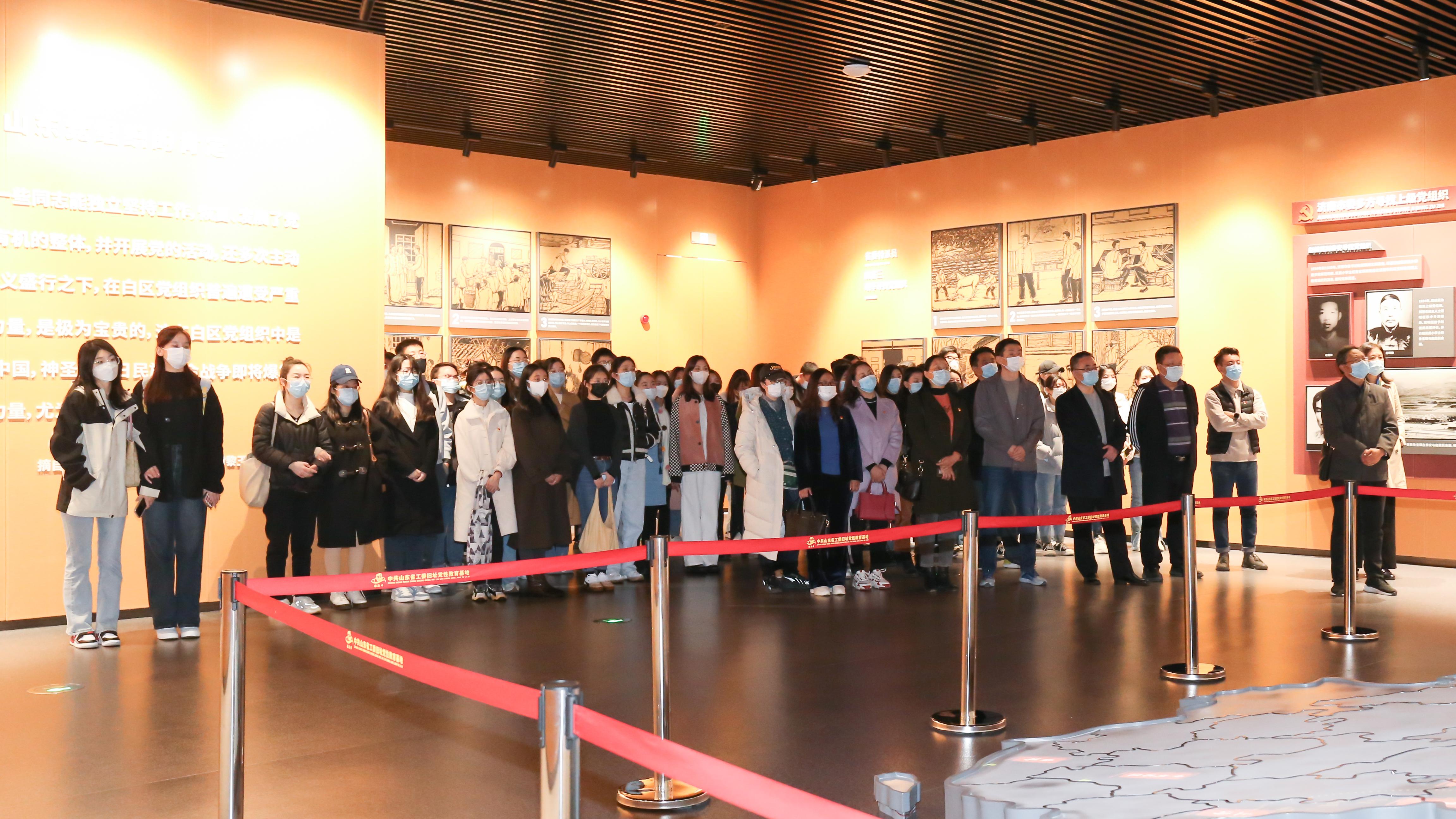 上午,大家首先来到了山东省工委旧址党性教育基地,在讲解员的带领下,大家仔细观看展出的一件件历史实物、一张张珍贵照片、一幕幕历史片段。通过丰富的历史资料、珍贵文物,党员师生们一起重温了以刘仲莹、赵健民同志为代表的齐鲁共产党人在异常艰难困苦的岁月中,毅然承担起中国共产党在山东发展壮大历史重任的革命事迹,深切感悟理想信念的无穷力量。参观结束后,党员师生们怀着无比崇敬的心情面对党旗庄严宣誓,致敬革命先辈,砥砺初心使命。