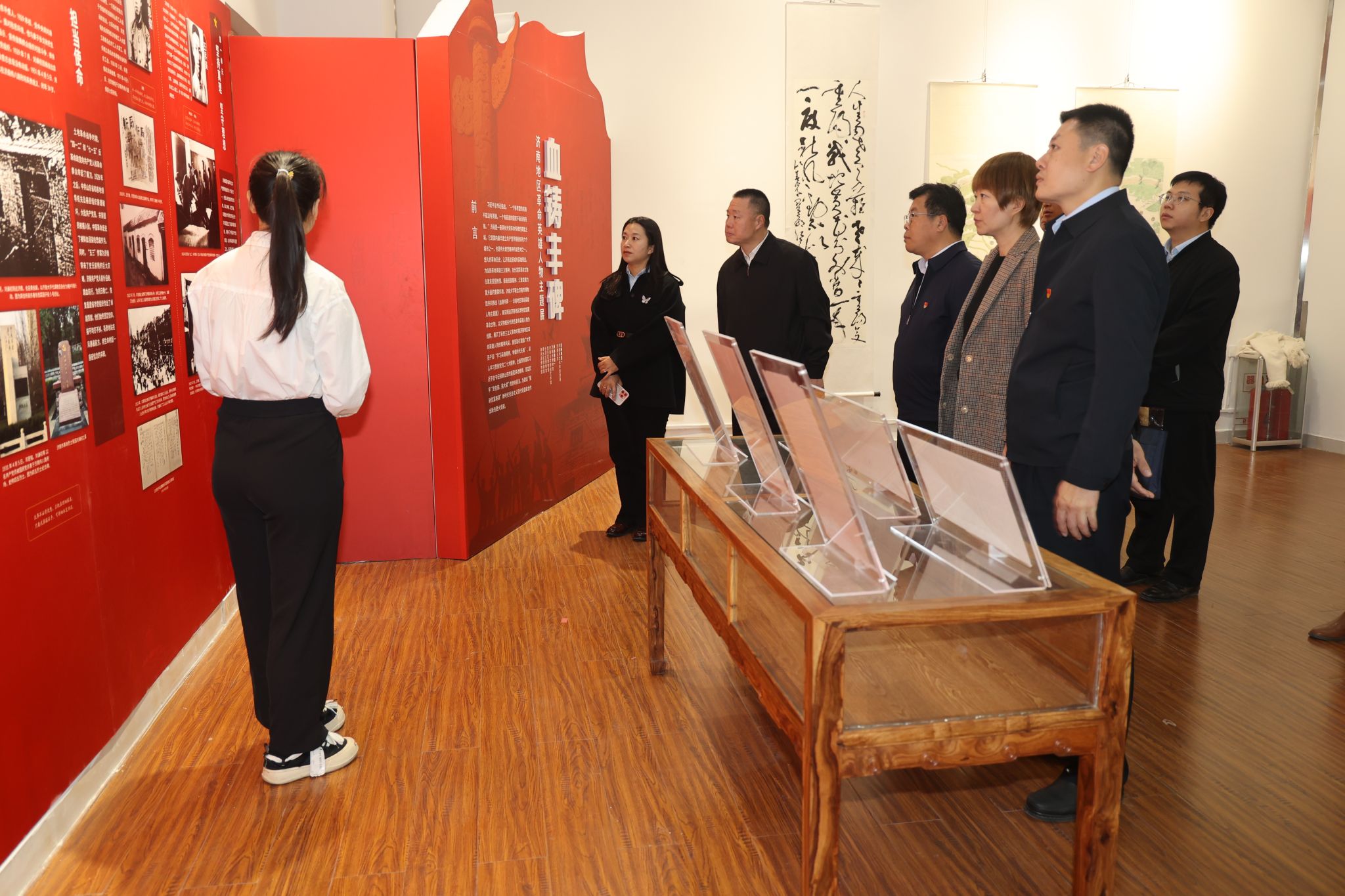 党委与山东省委政法委法治处、济南市委政法委基层社会治理处、市中区委政法委组织党员干部到学校舜道艺术馆参观《血铸丰碑——济南地区革命英雄人物主题展》,联合开展“传承红色基因 凝聚奋进力量”主题党日活动。学院党委书记李春慧、副院长李秀凤,省委政法委法治处处长、一级调研员姜远桥,市委政法委基层社会治理处处长刘俊凯,区委政法委刘海处长,以及部分党员同志参加了活动。