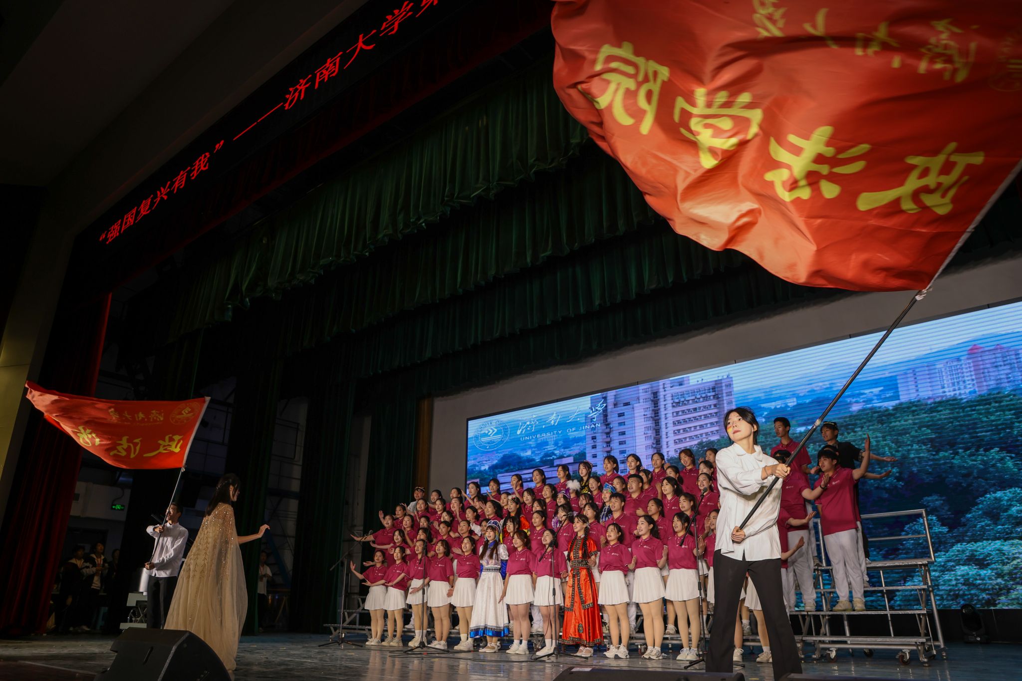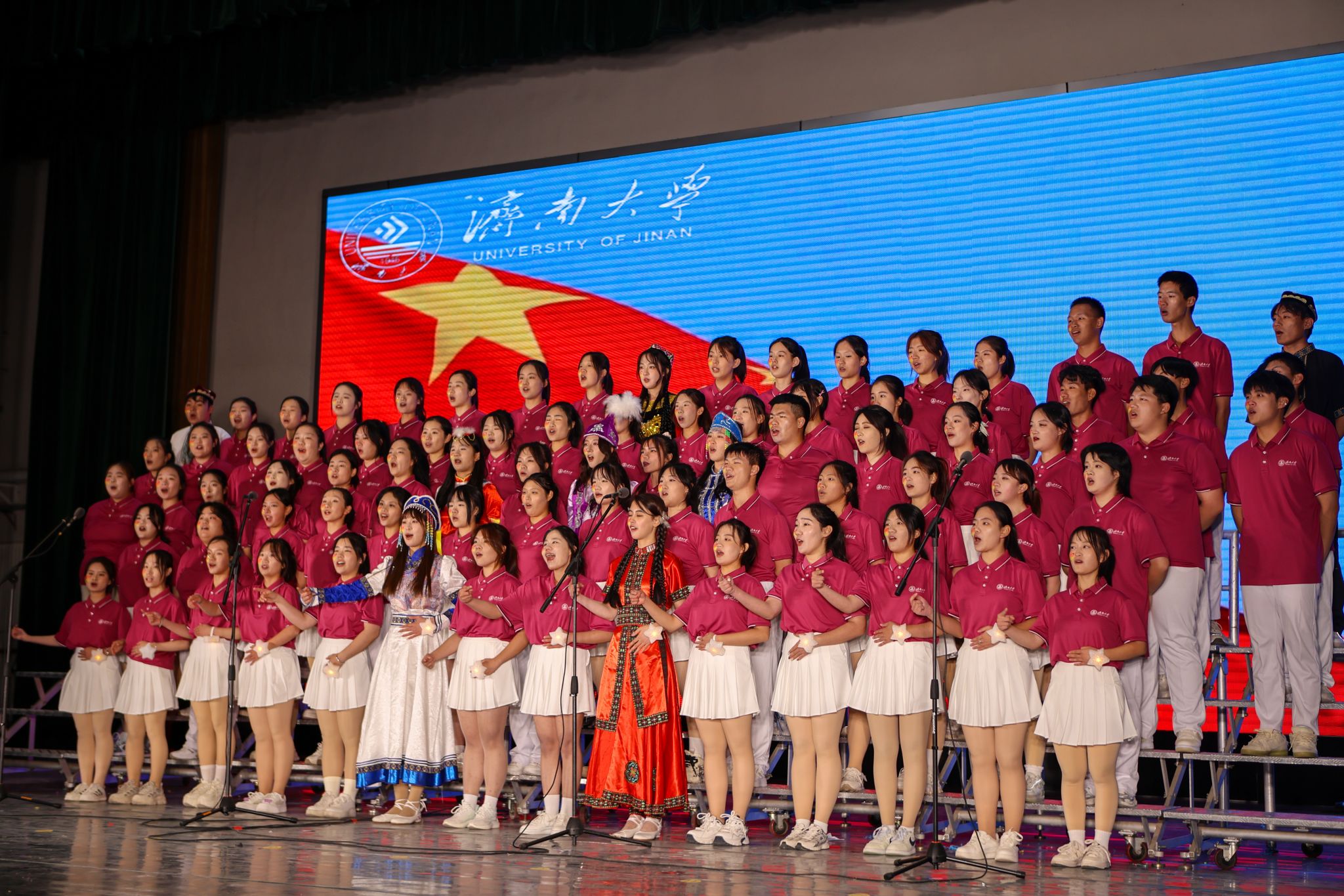 新生辅导员沈正浩老师作为此曲目的领唱者,以嘹亮而富有感染力的嗓音,引领着合唱的旋律飞向高空。钢琴声如一曲潺潺流水,为合唱增添了一抹灵动的色彩;舞者像一只翩跹起舞的蝴蝶,为合唱增添了一份视觉盛宴;指挥者则像一位神奇的魔法师,胳膊轻盈地舞动,调动着每一个音符,让合唱的节奏精准而有力。而最后一首《美丽中国》节奏欢快、旋律热情奔放,向观众展现了一幅各民族其乐融融、各民族相亲相爱的和谐画卷。在麻豆成人