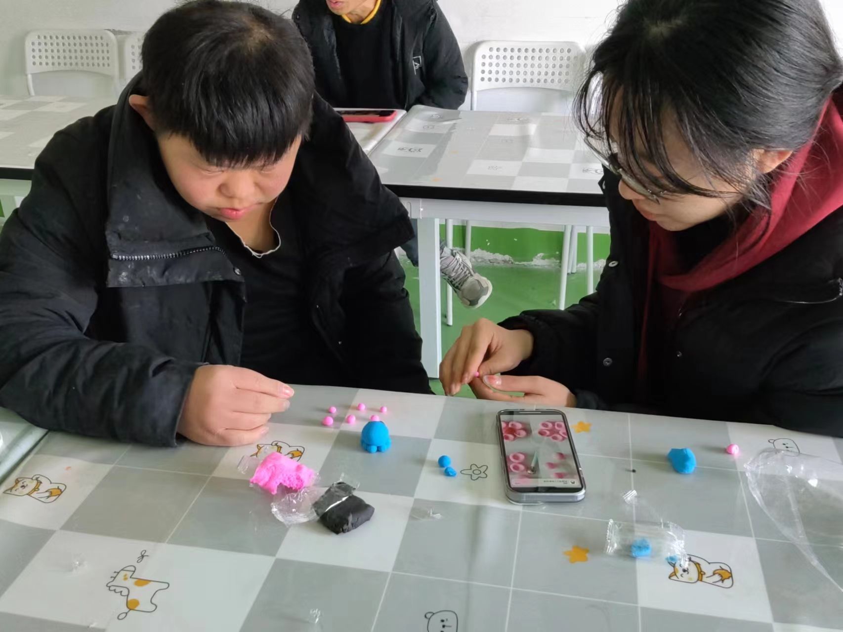 活动当天,志愿者们为孩子们精心准备了黏土和音乐器材,为活动的顺利进行提供保障。孩子们在捏黏土环节中充分发挥创造力和想象力,他们揉捏着五颜六色的黏土,制作出丰富多样的形状和图案。志愿者们耐心指导,鼓励孩子们自由表现,与他们一同感受创作的乐趣。志愿者们带领孩子们一起演唱歌曲,在音乐的感染下,孩子们逐渐放开了歌喉,用最纯真的声音唱出心中的愉悦和对美好生活的向往。志愿者和自闭症孩子们的互动充满温馨与欢笑,现场被充满爱与和谐的音乐氛围所环绕。本次活动为志愿者们搭建了一座桥梁,让他们更加深入地了解自闭症儿童的世界,自闭症儿童们也感受着来自志愿者们的关爱和尊重,在包容和支持的环境下逐渐敞开心扉,勇敢地展示自我。