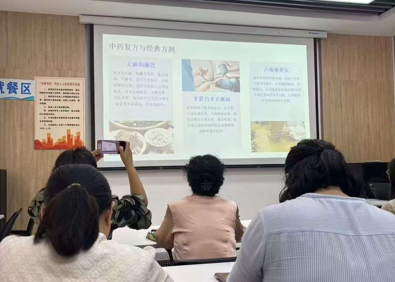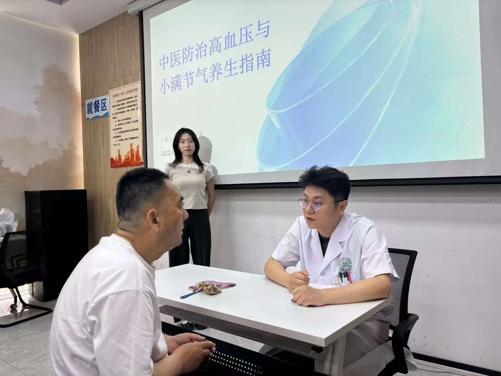槐荫区二厂医院中医医生围绕高血压中医防治理论,从辨证施治角度讲解中药调理、穴位保健方法。实习生们配合医生开展实践教学,运用小组工作技巧,组织居民分组练习太冲穴、曲池穴等穴位按摩,通过角色扮演、情景模拟等方式,帮助居民掌握操作要点。在小满节气养生知识讲解环节,实习生结合节气特点,设计“养生知识拼图”“食疗搭配竞赛”等趣味游戏,激发居民参与热情,现场气氛热烈。