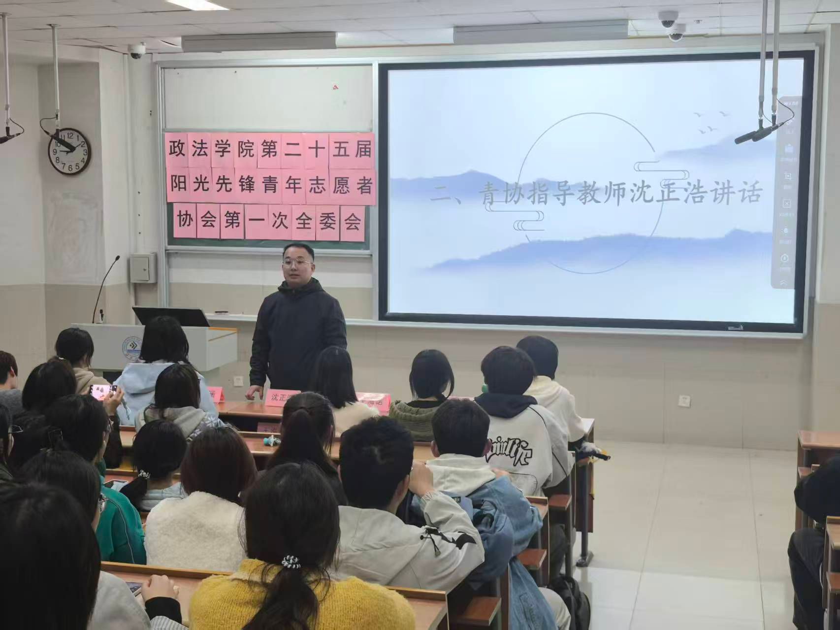 阳光先锋青年志愿者协会(以下简称“政法青协”)于第11教学楼1101举办二十五届第一次全委会。