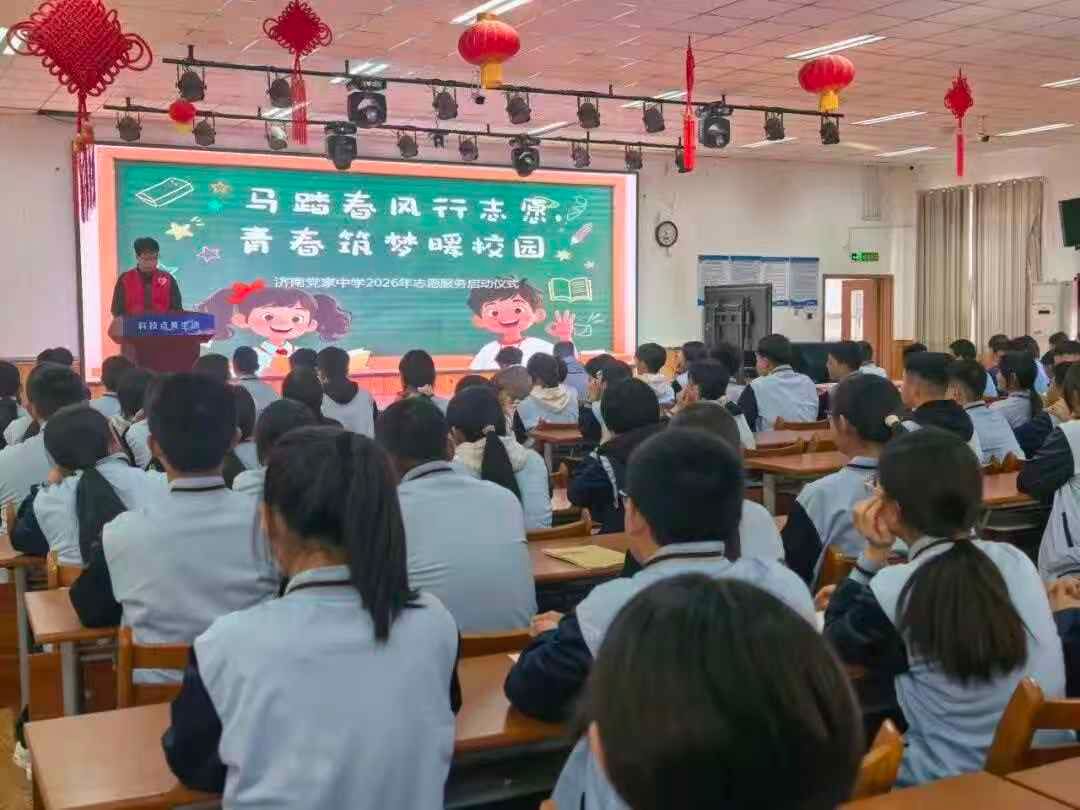 社工专业实习生与济南市市中区心家园社会服务中心携手,共同助力党东中学开展 “志愿服务团,党旗添光彩”文明志愿者启动仪式。仪式在党东中学校园顺利举行,全体学生志愿者庄严集结、宣誓出征,标志着一支充满活力与担当的校园志愿队伍正式成立,也为校社协同育人注入温暖而坚实的志愿力量。